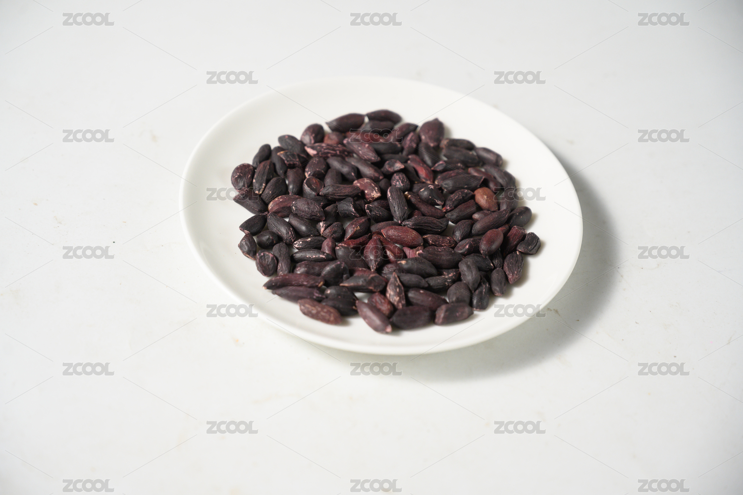 桌面上的盘子里的美味可口的黑皱皮花生
