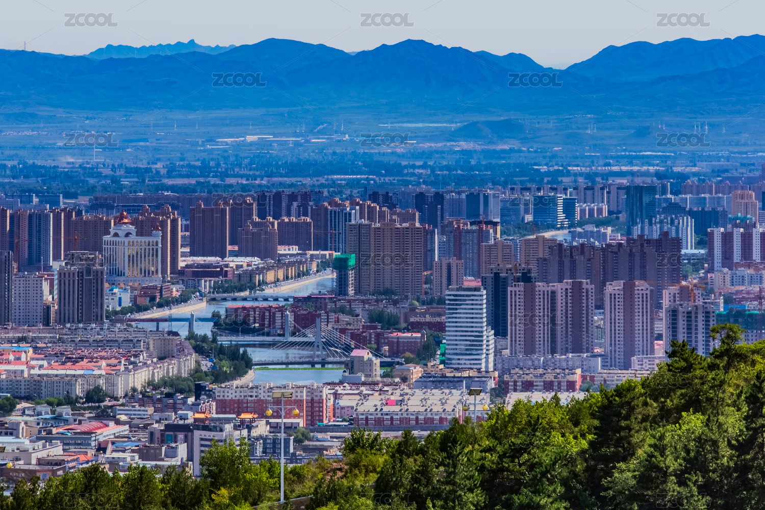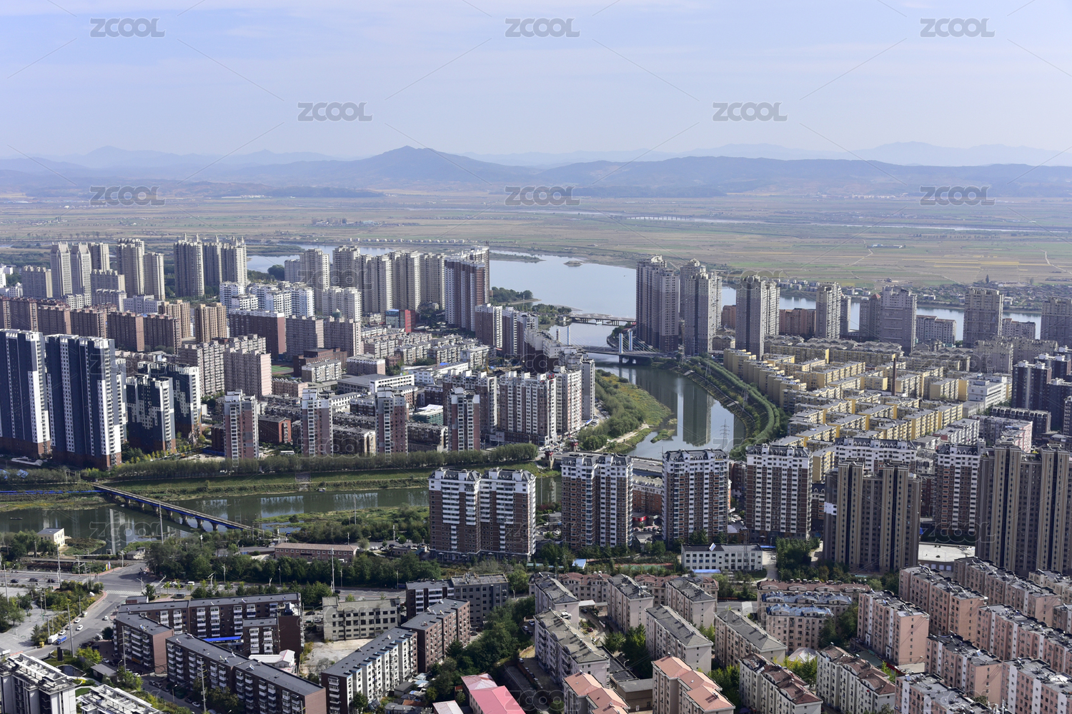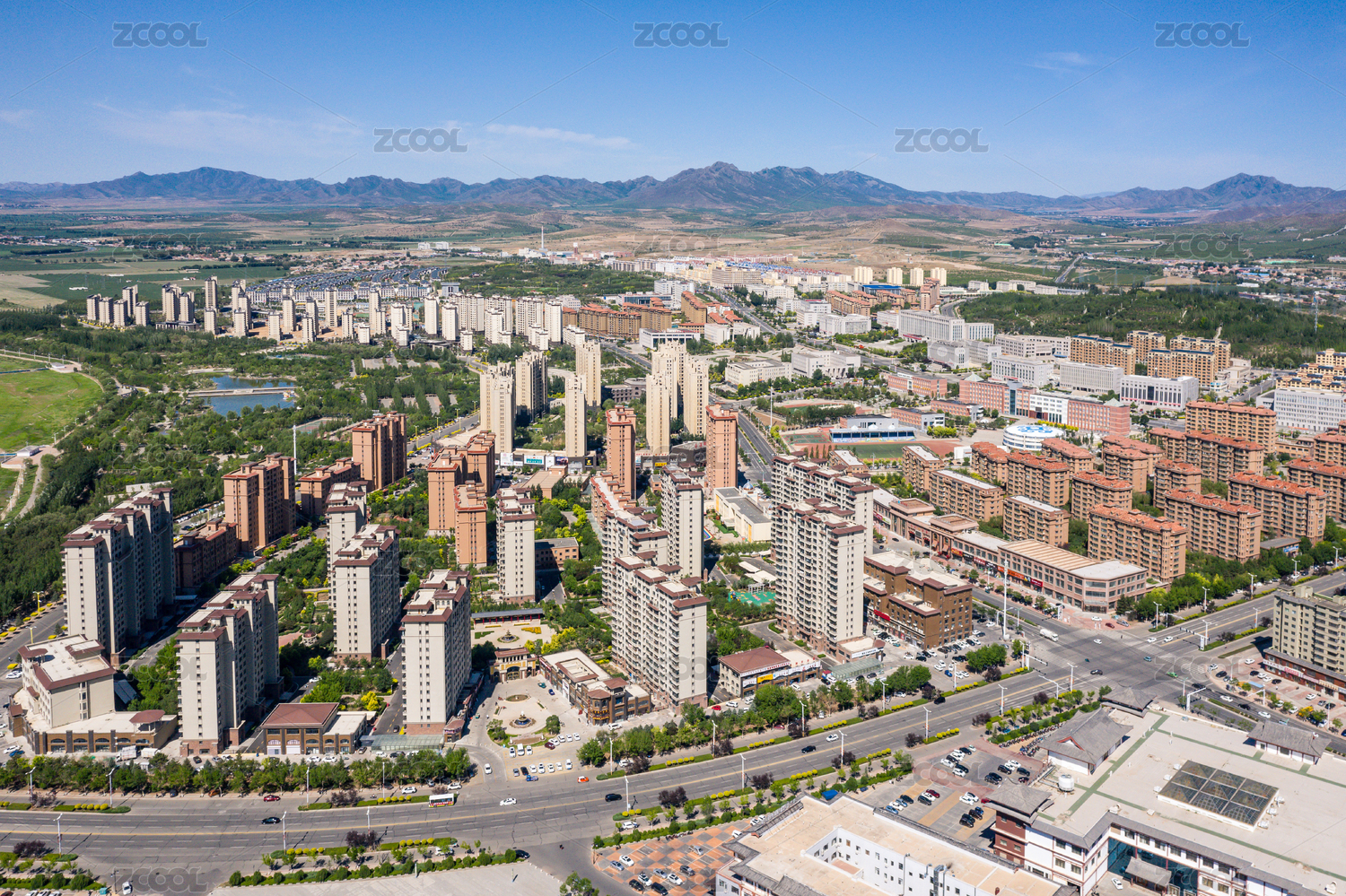 航拍内蒙古巴林左旗政府林东镇城市风光