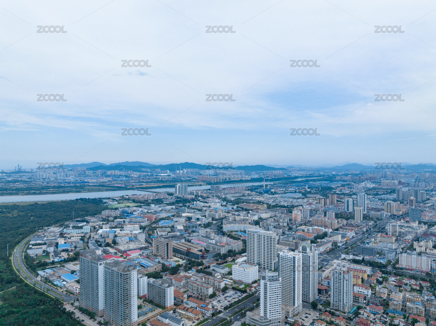 中国辽宁锦州小凌河云飞大桥航拍城市