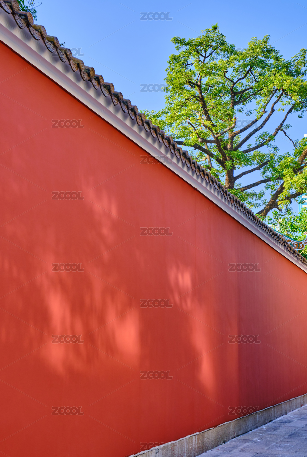 红墙,绿树,传统建筑,中国风,中式建筑,绿瓦,古建筑,光影,阳光,斑驳
