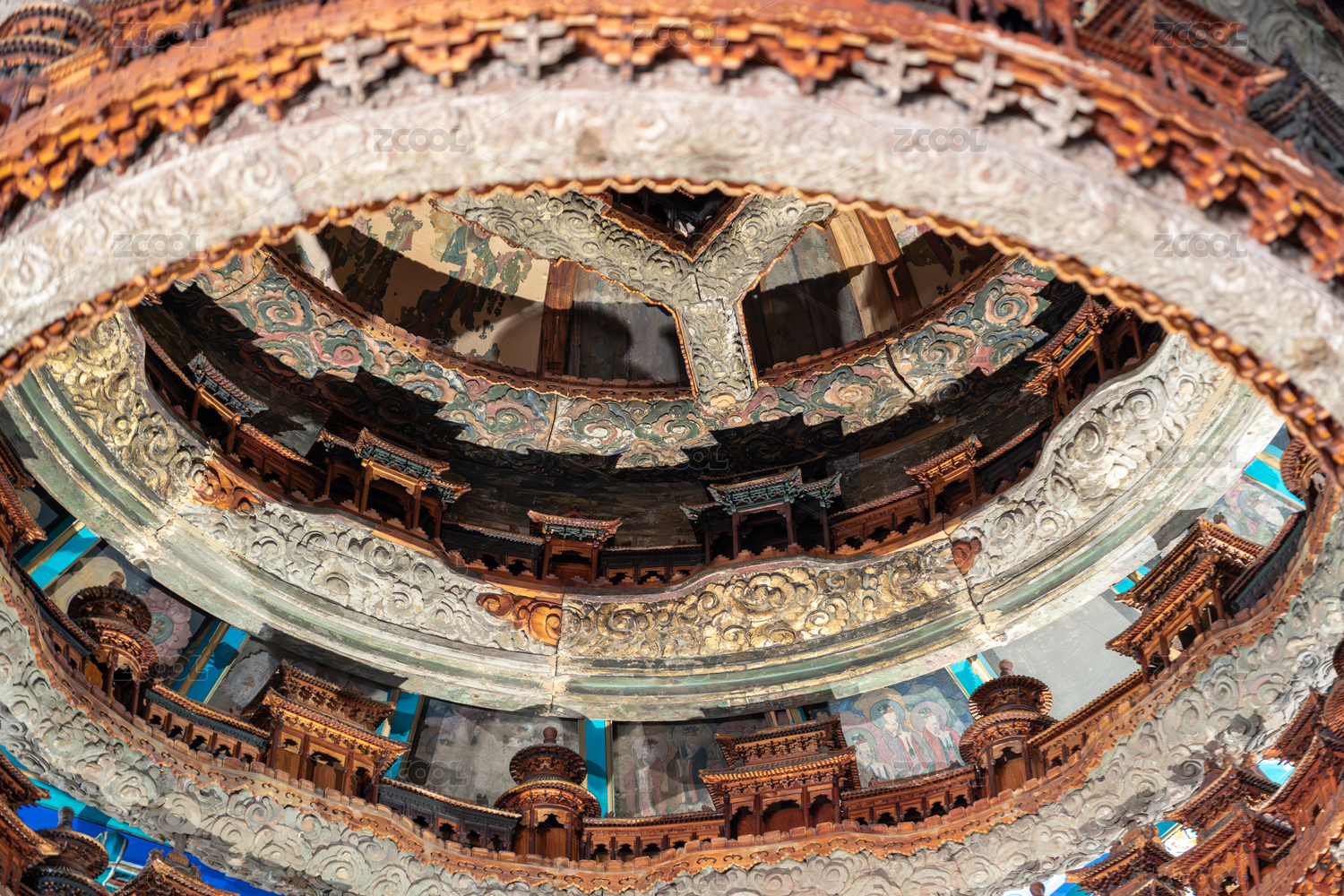 北京古代建筑博物馆精美雕花穹顶仰视视角