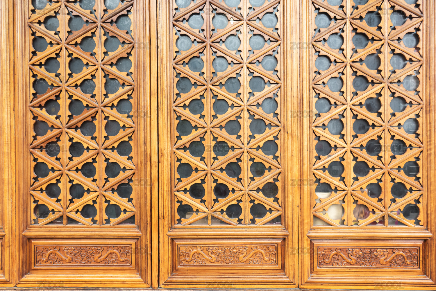 中国浙江省新昌县梅渚古镇古建筑木门特写