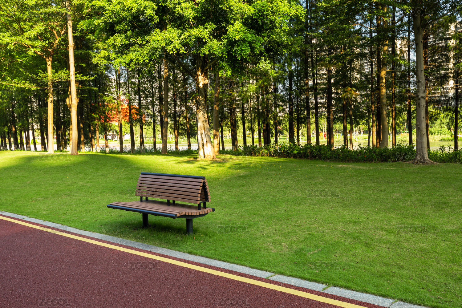公园绿地长椅静谧景色