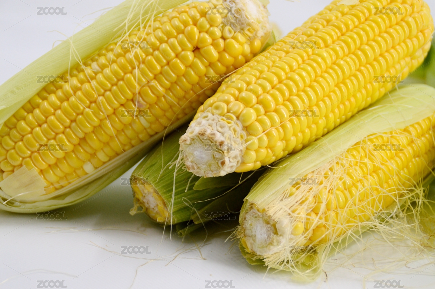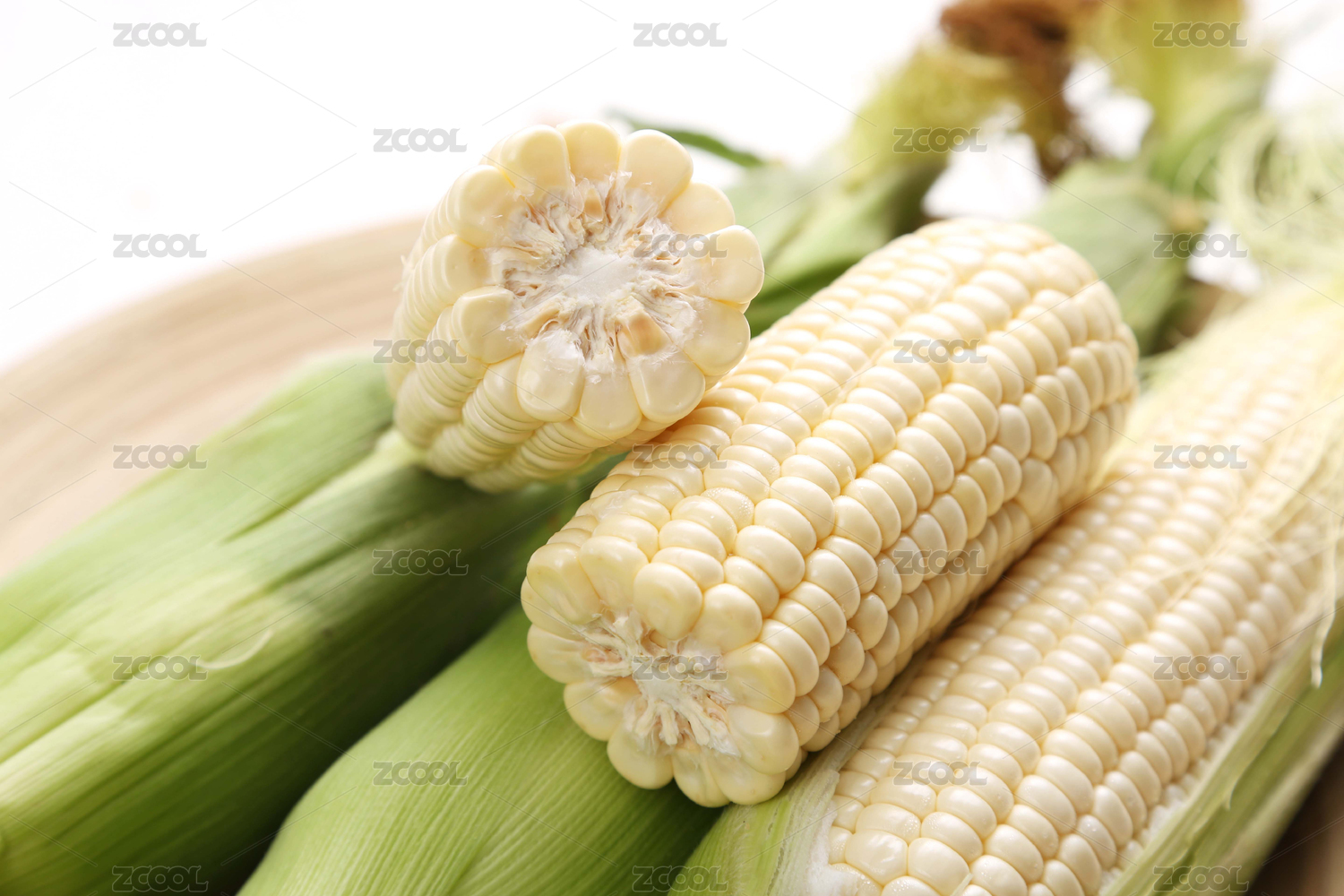 白底上的甜糯粘玉米棒