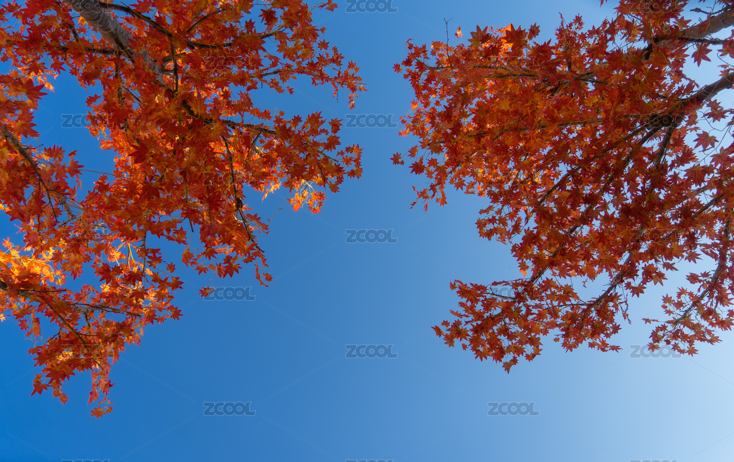 低视角拍摄秋日的红叶