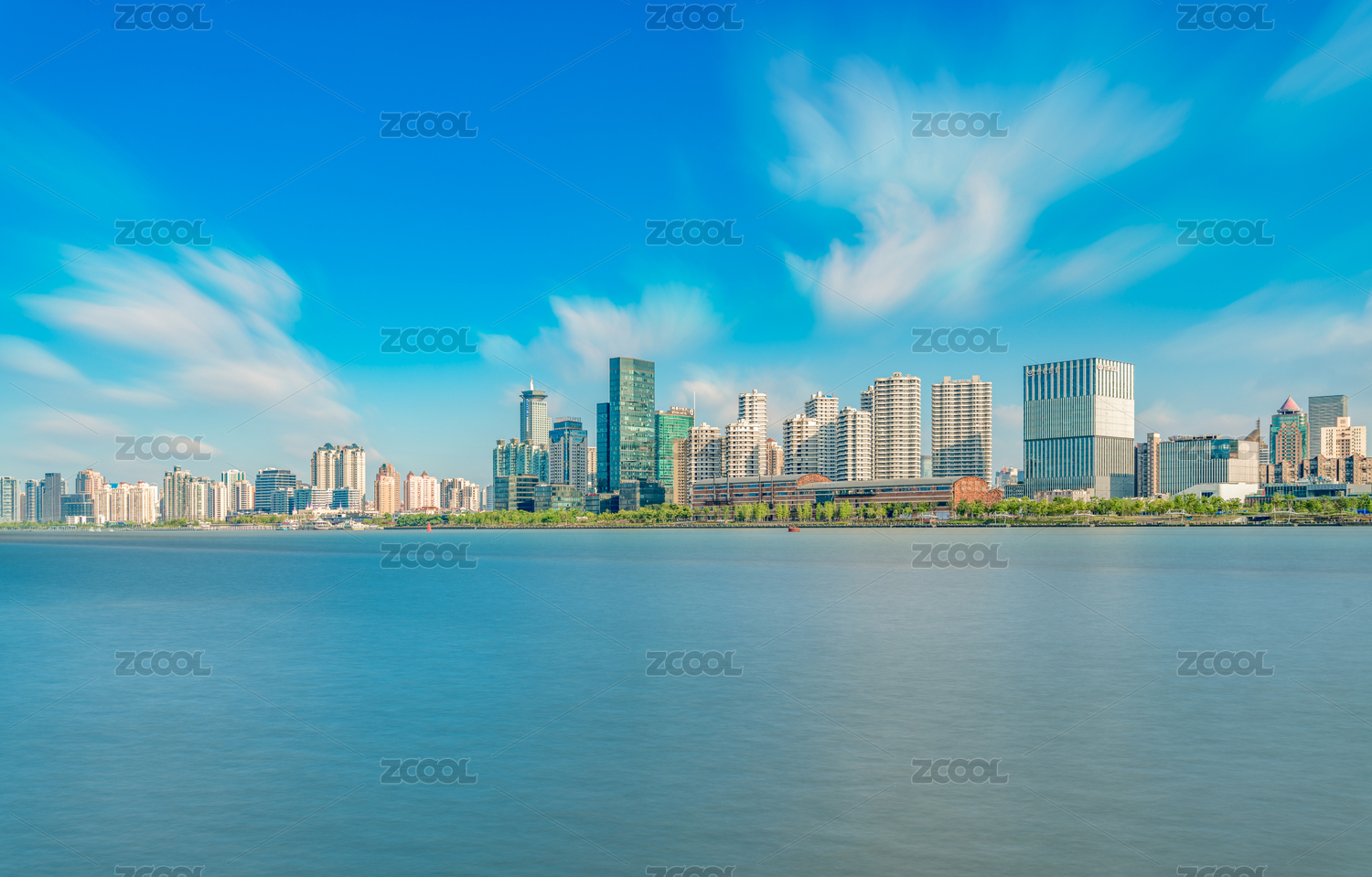 湖南长沙橘子洲湘江风光带白天城市天际线全景镜面倒影风光