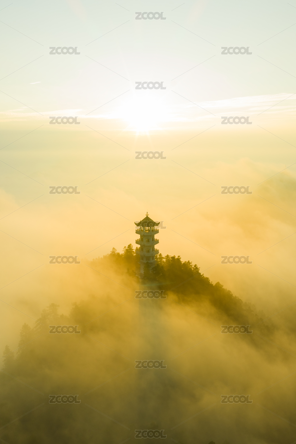 湖南省衡阳市南岳衡山金刚舍利塔日落