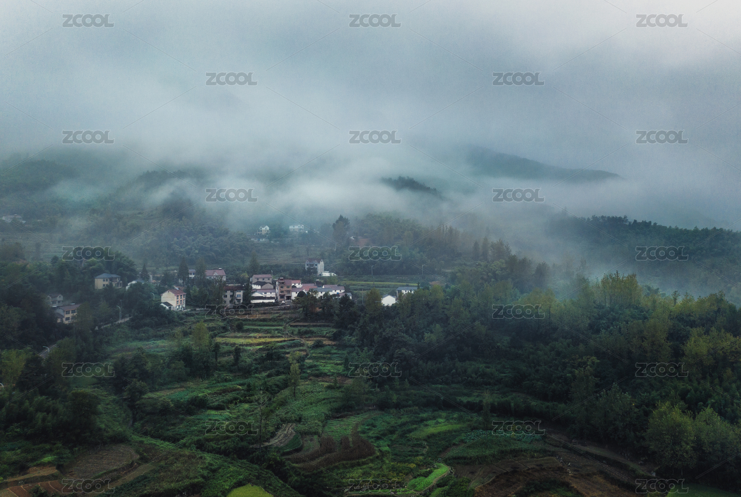 春季的雨天,浙江开化县乡村田野美景风光