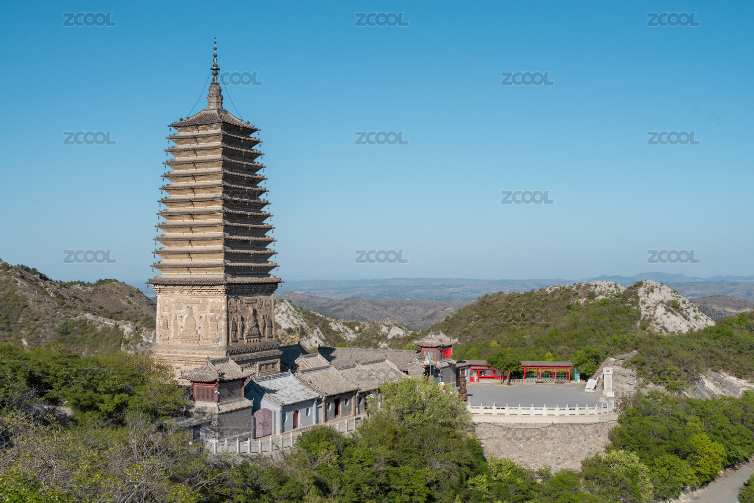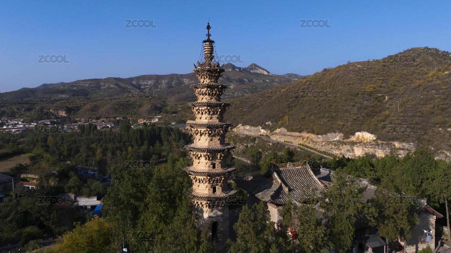 俯瞰山西太原太山龙泉寺舍利塔秋日风光