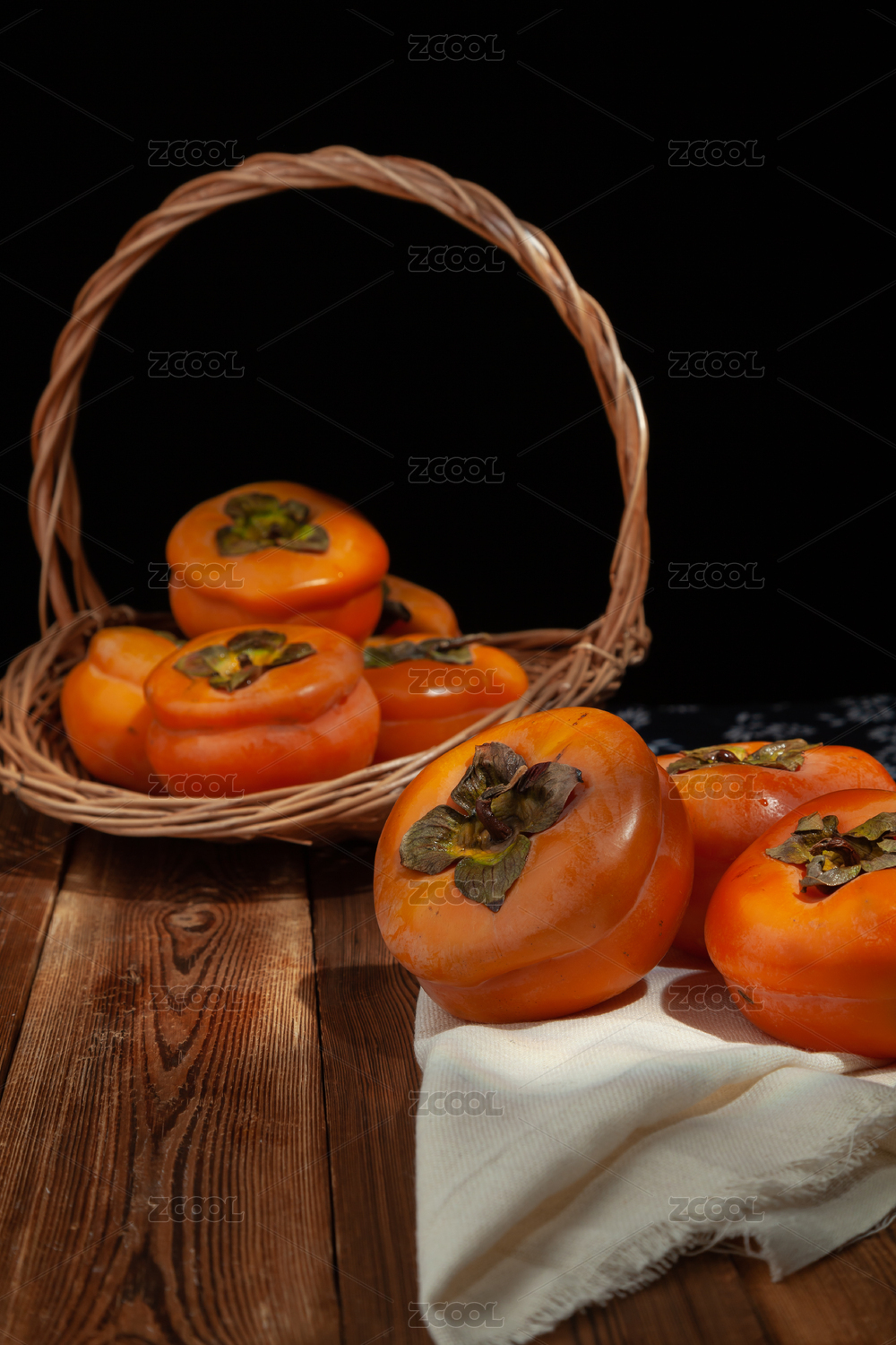 秋季新鲜采摘摆盘的时令水果红柿子静物美食