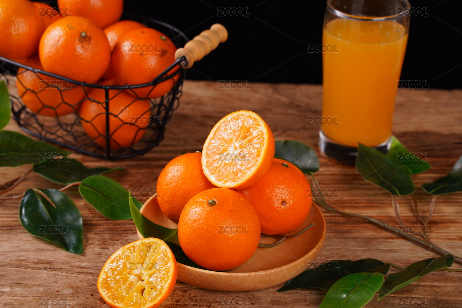 木底上放着一蓝新鲜砂糖橘