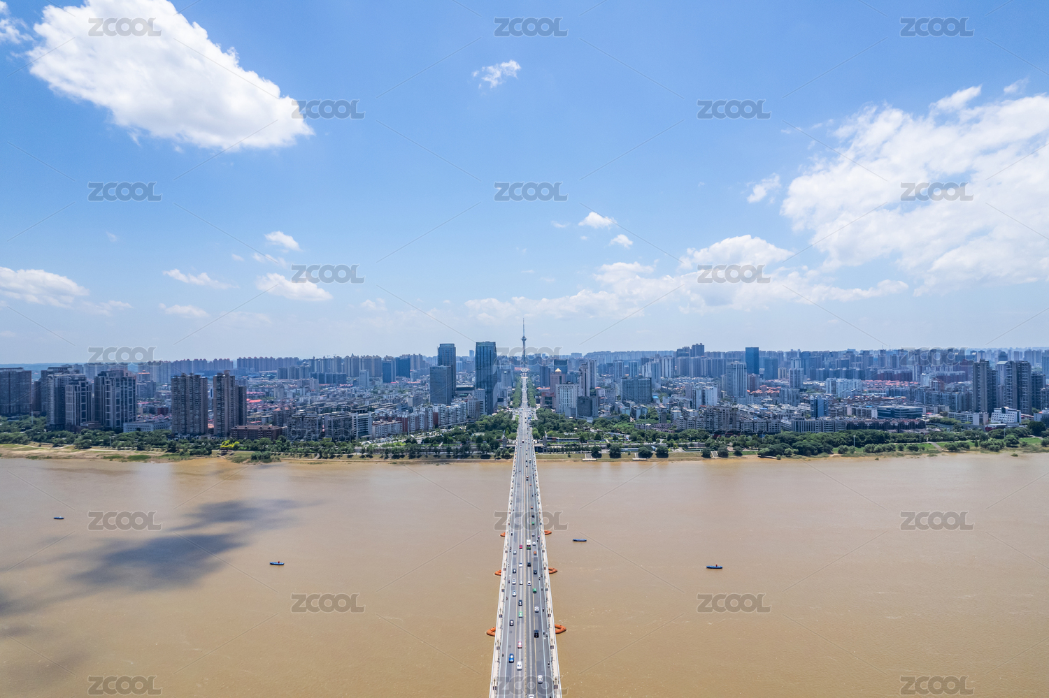 航拍中国湖南岳阳洞庭湖大桥与船队
