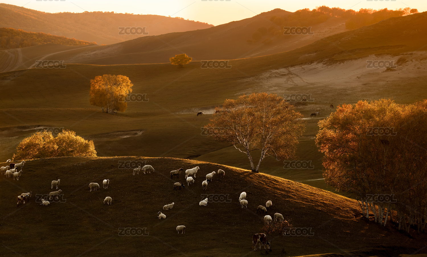 中国内蒙古赤峰乌兰布统草原金秋牧羊图