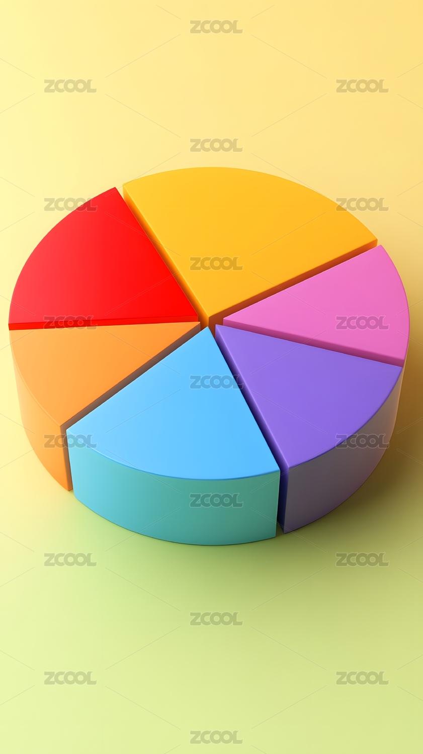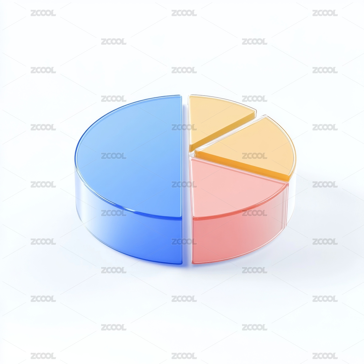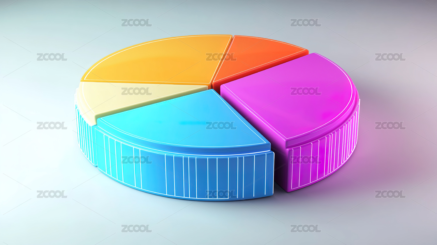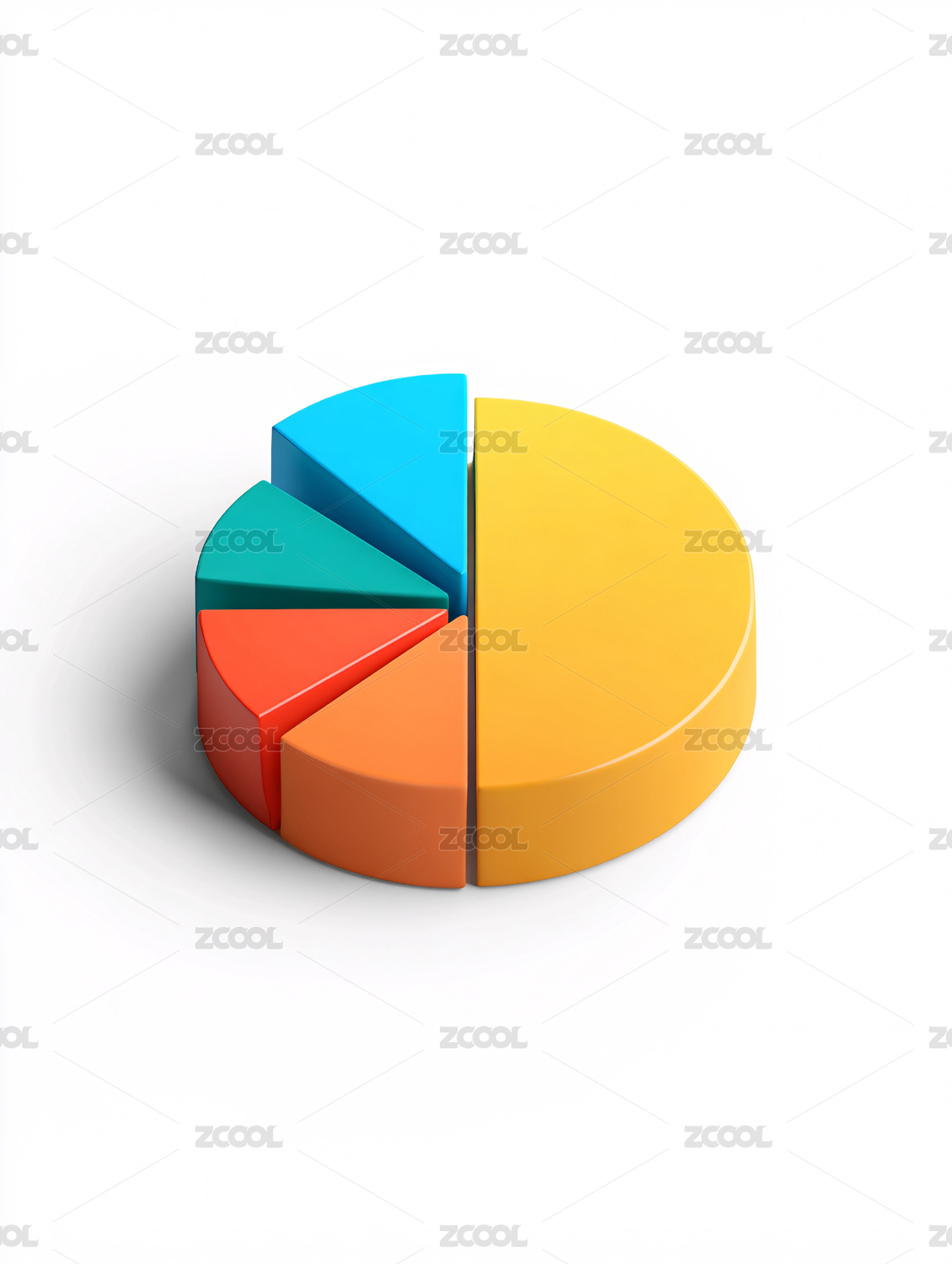 饼图,彩色,立体,蓝色,绿色,红色,黄色,橙色,圆形,几何,模型,分割,部分,结构,设计,颜色,对比,组成,图形,元素,空间,视角,阴影,背景,透明