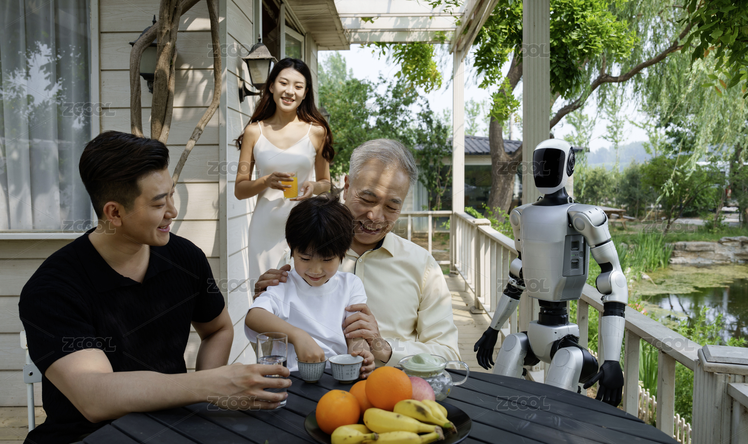 老人,科技,机器人,家庭生活,东方人,亚洲人,中国人,高科技,人工智能,户外