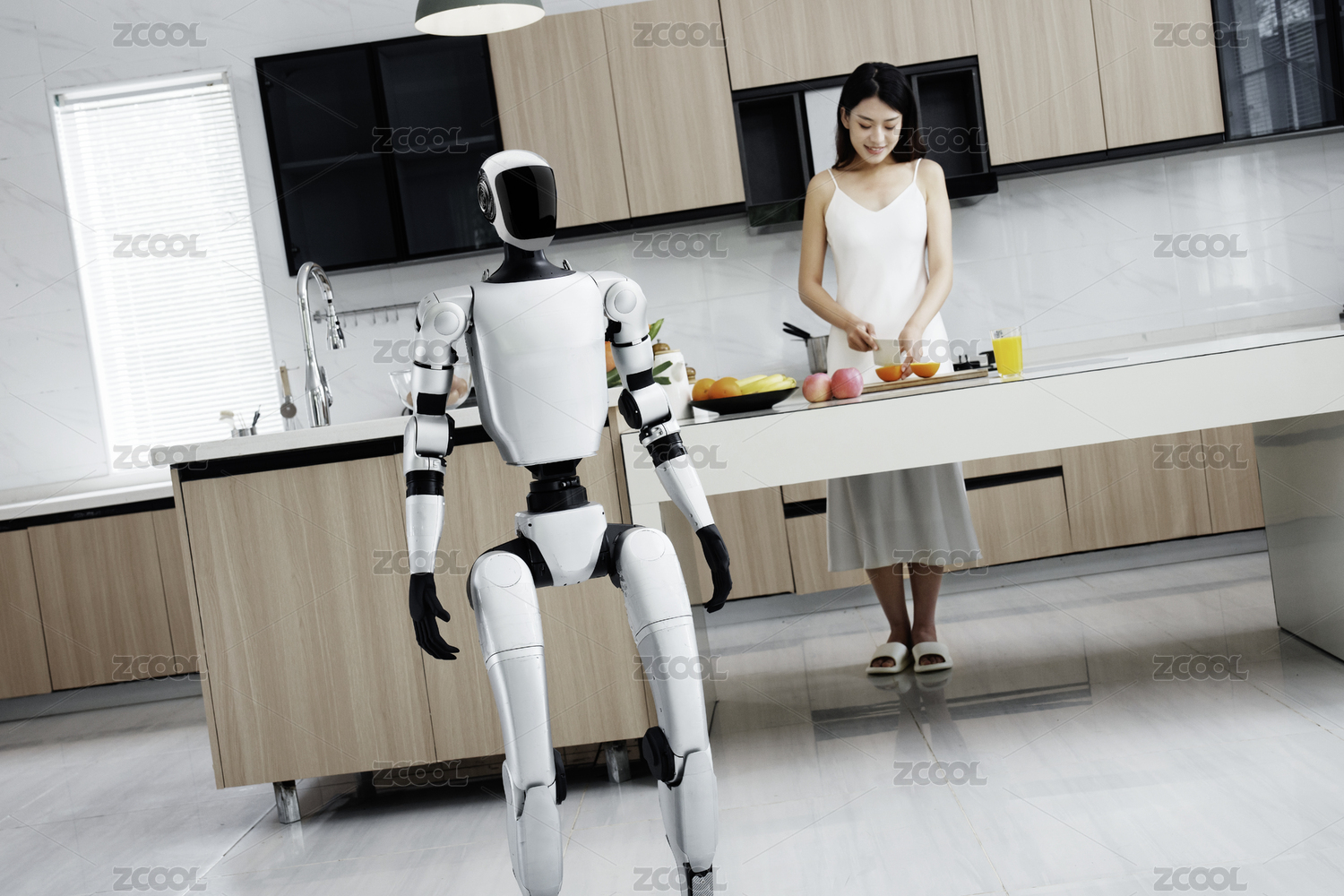 东方人,亚洲人,中国人,高科技,人工智能,人机互动,科技感,未来感,服务,和谐
