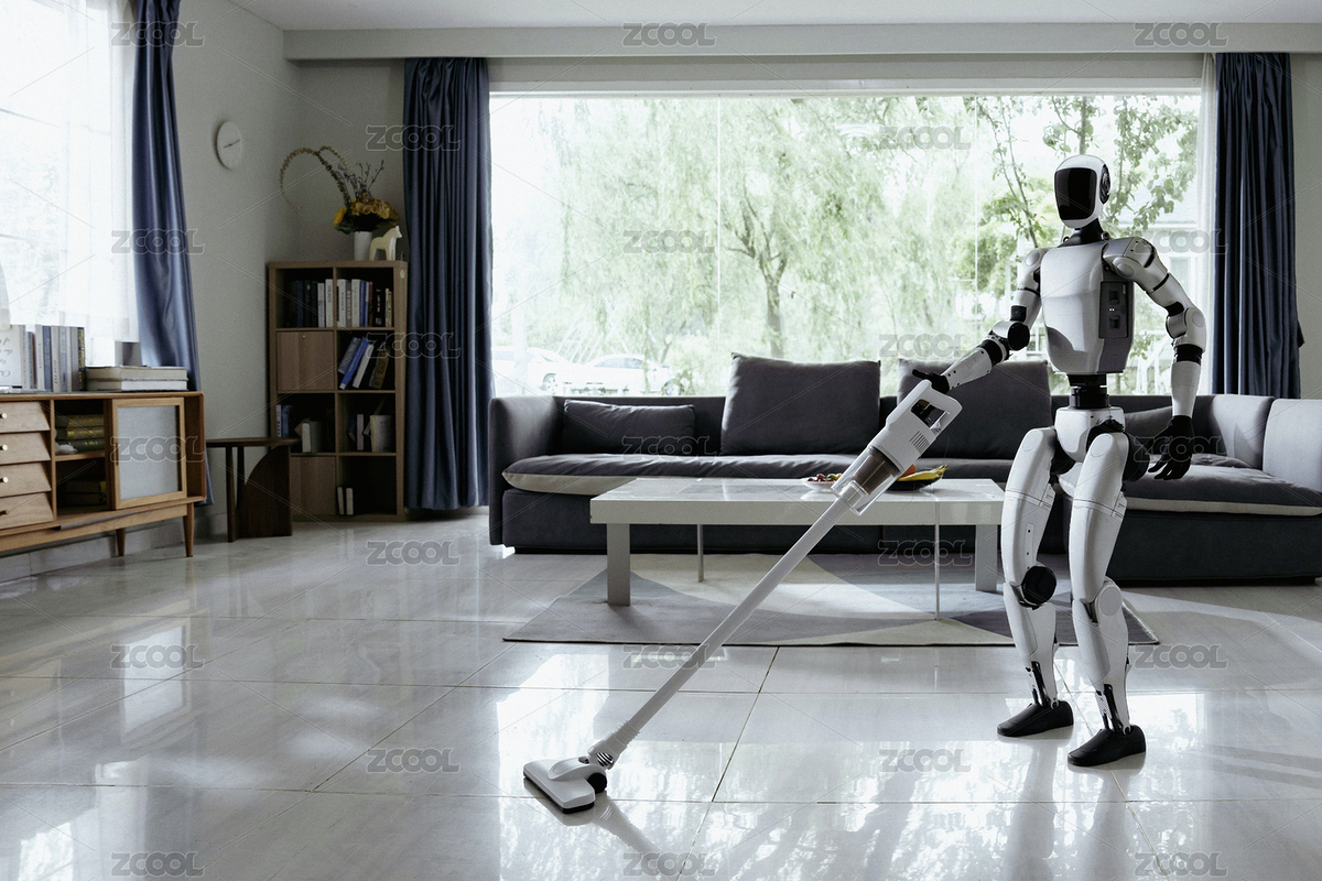 科技,机器人,人工智能,科技生活,人形机器人,智能,横图,客厅,家务劳动,未来家居