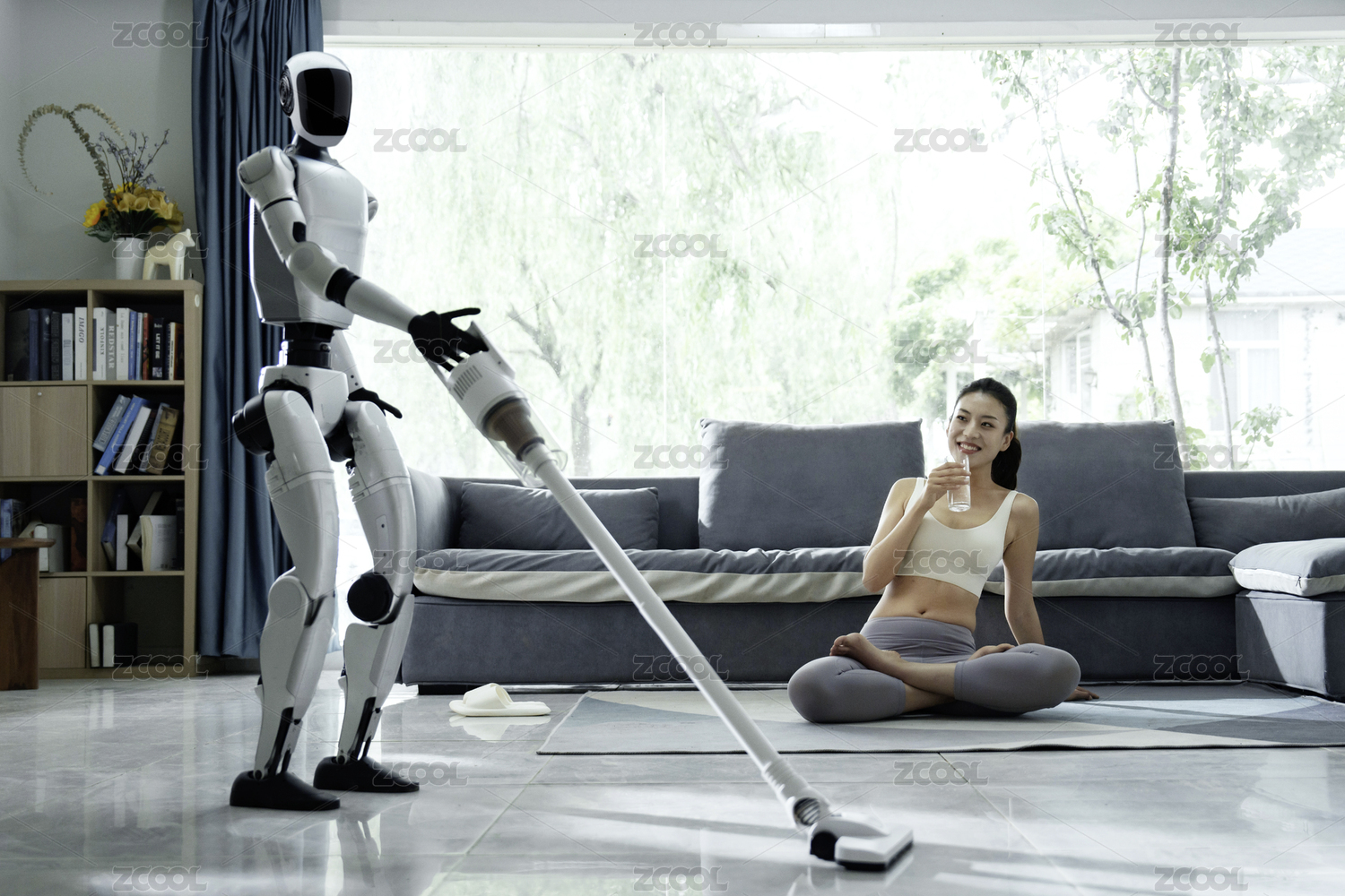 科技,家庭生活,人工智能,科技生活,人形机器人,互动,家庭场景,智能,现代,家庭