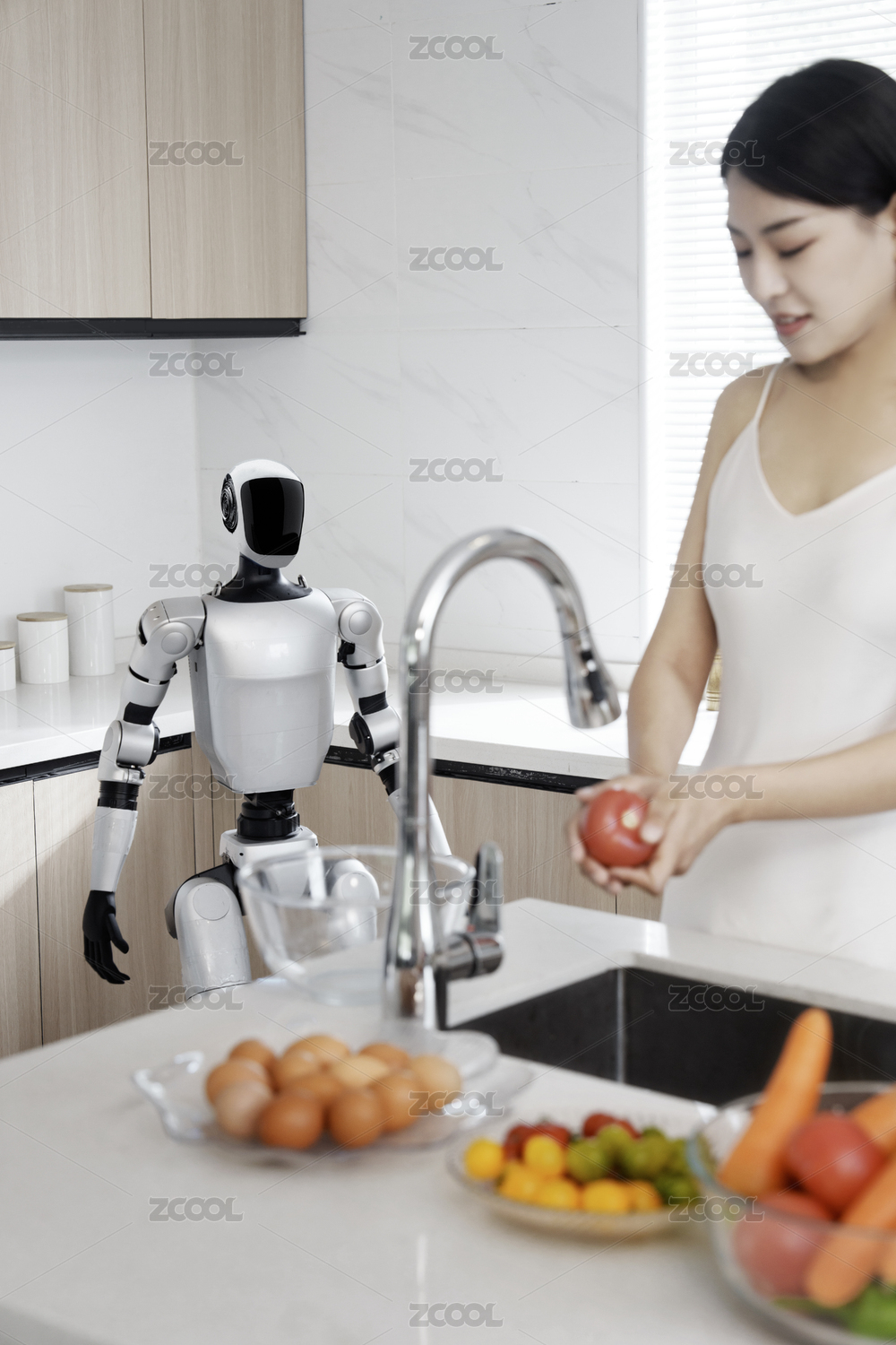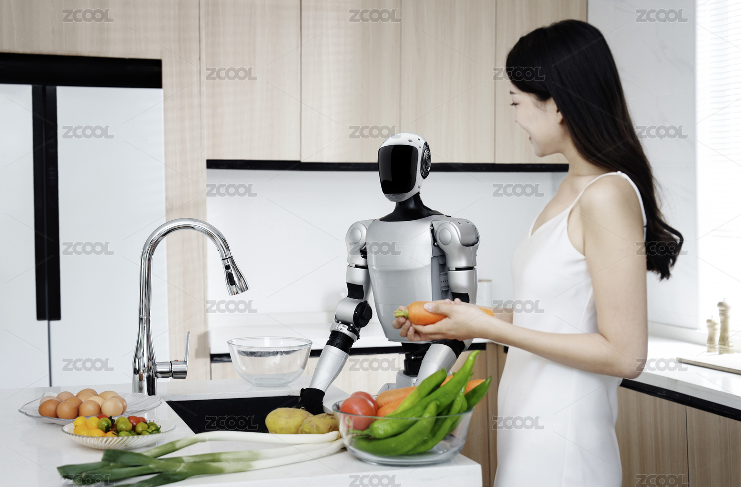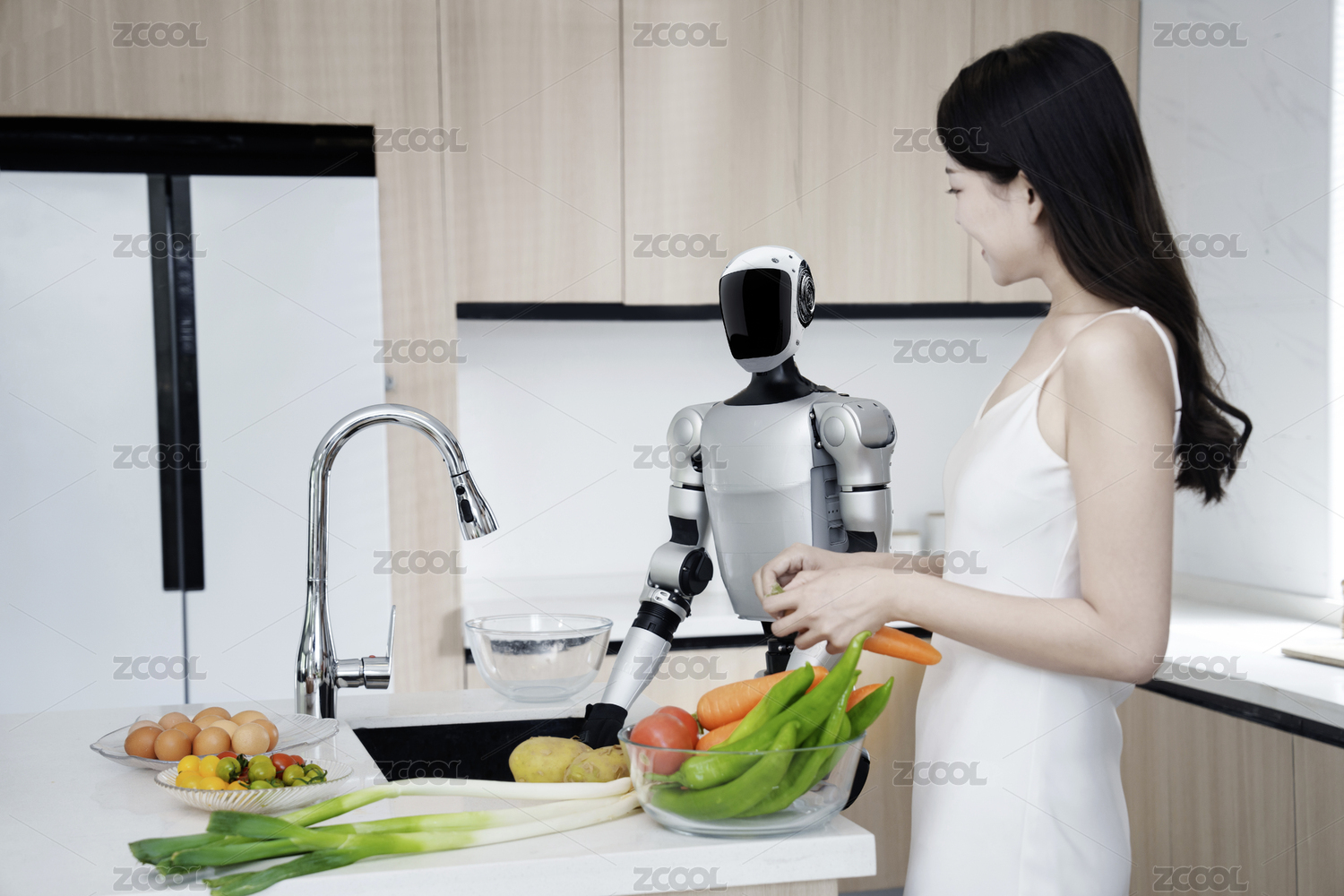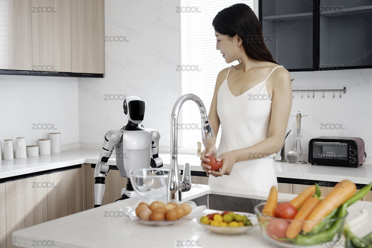 科技,机器人,人工智能,科技生活,女人,人形机器人,厨房,智能,家务劳动,未来家居