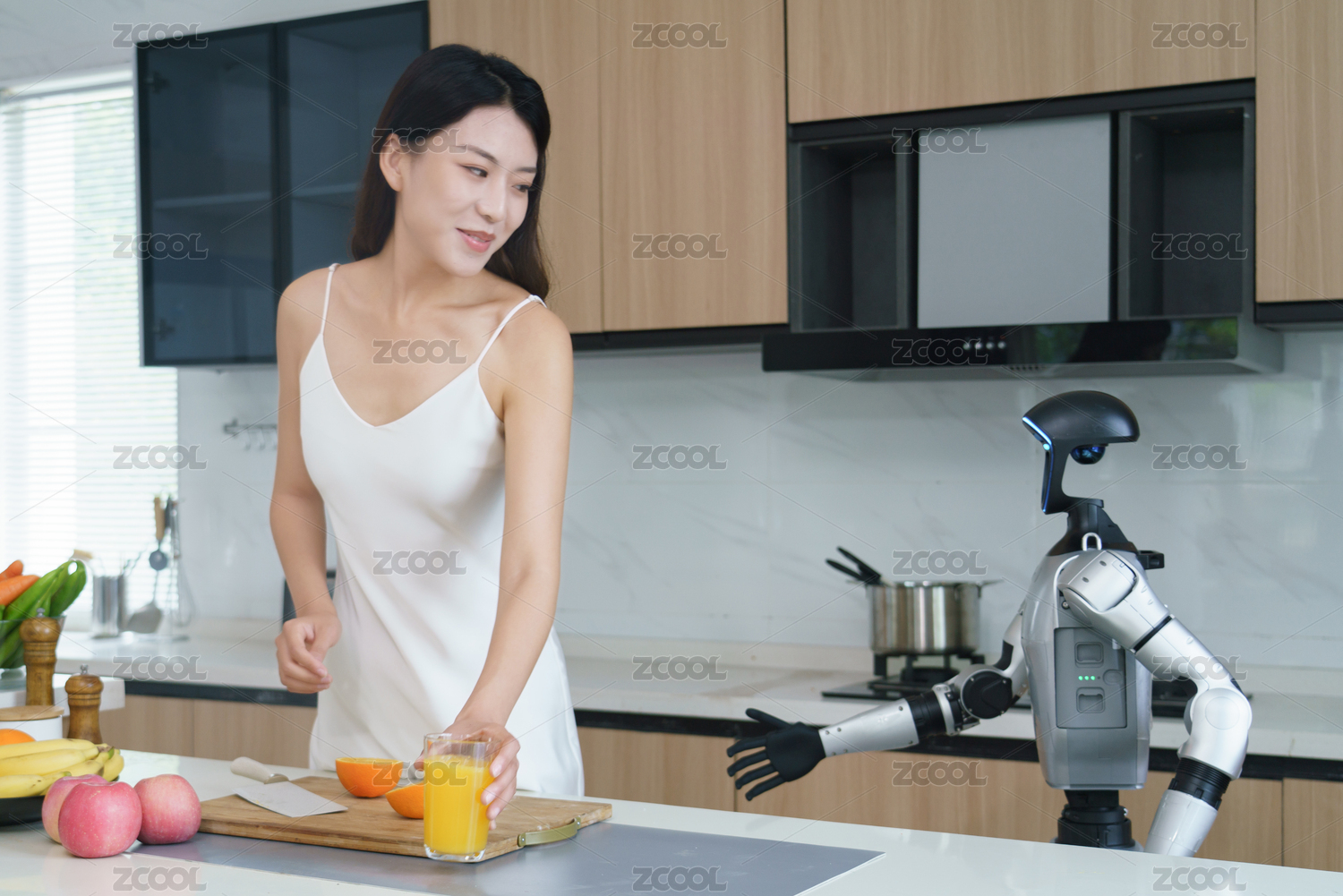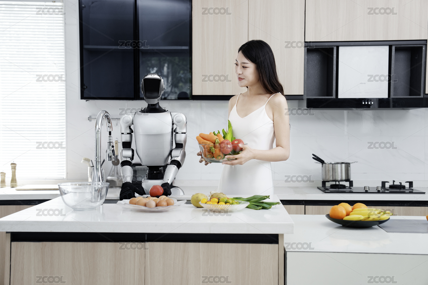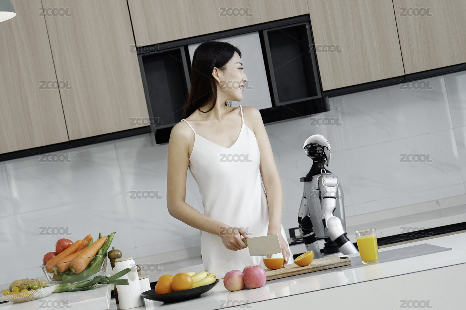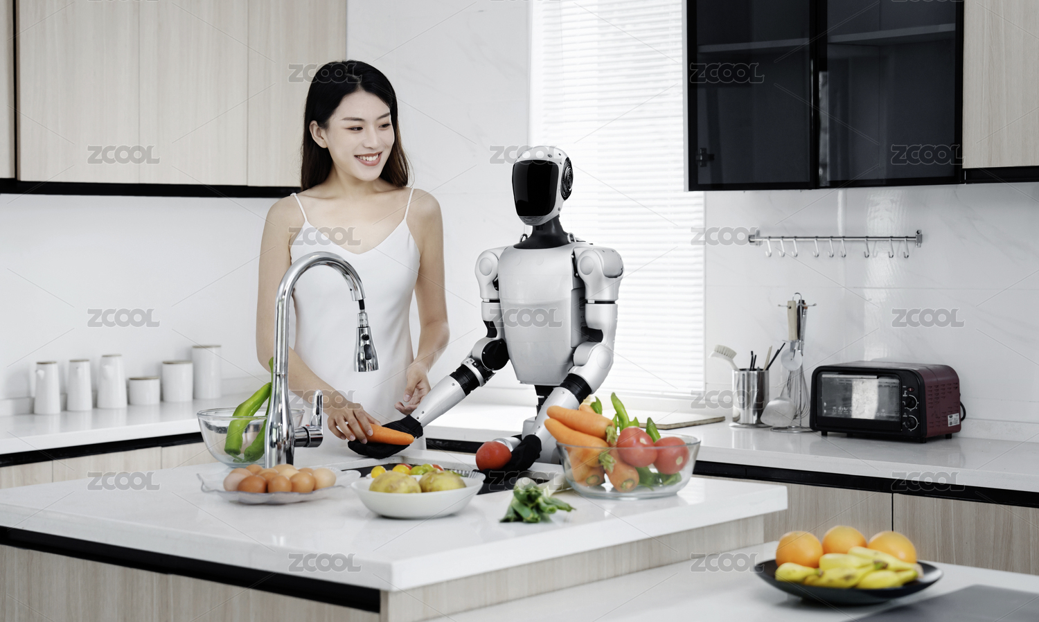 科技,机器人,人工智能,科技生活,女人,人形机器人,厨房,智能,家务劳动,未来家居