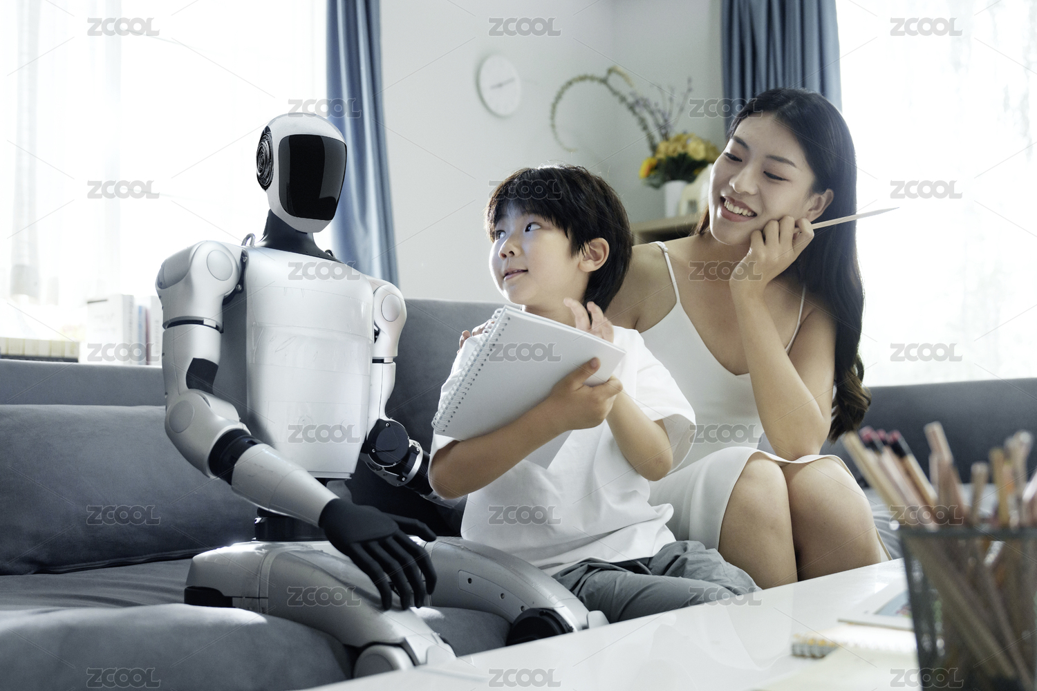 机器人跟家长辅导孩子作业