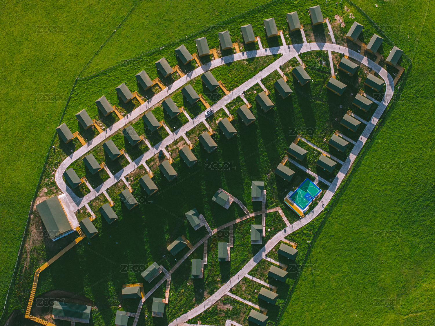 航拍武汉江夏安山湖湾樾舍度假区风景