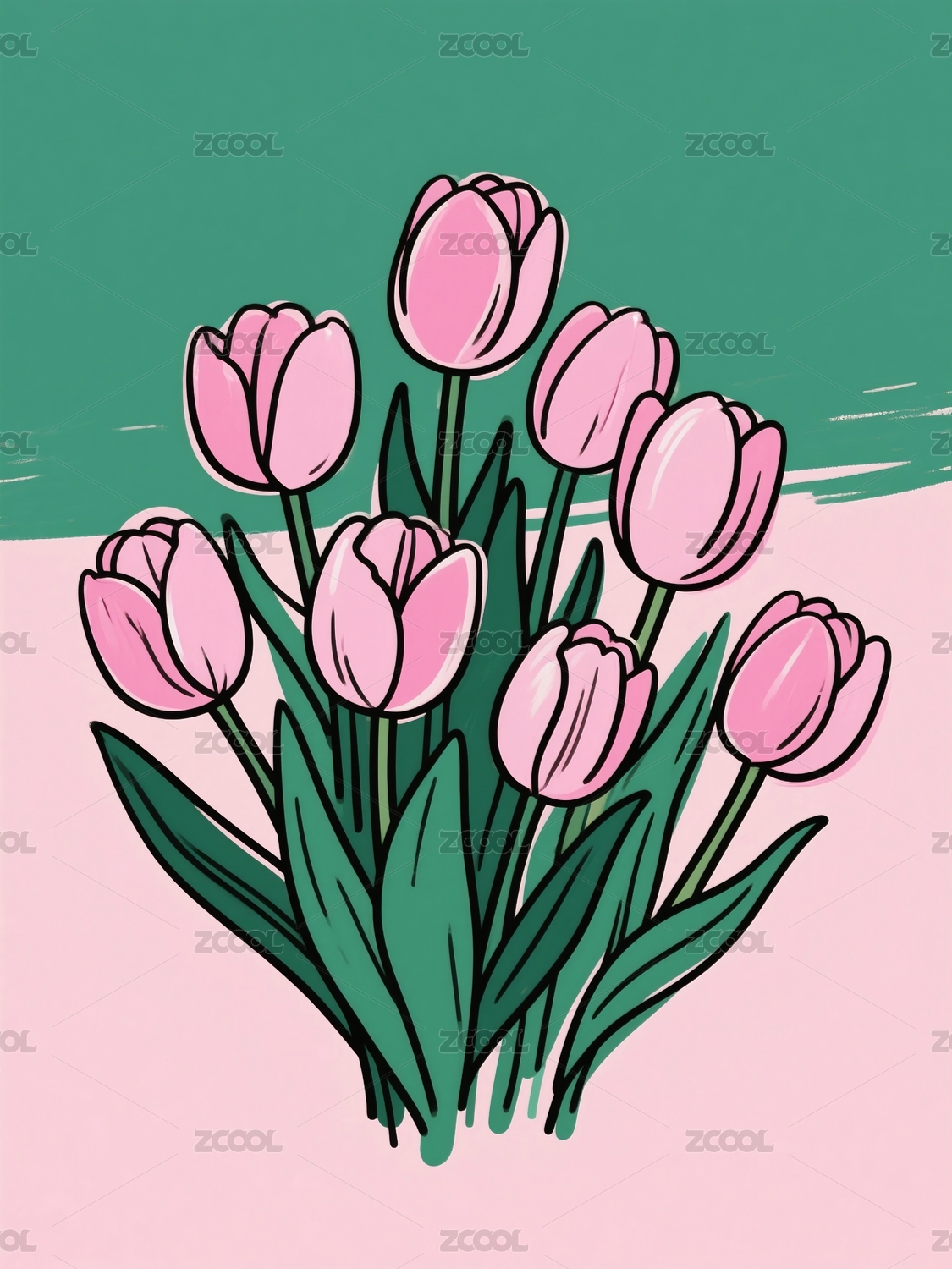 粉色郁金香花束插画