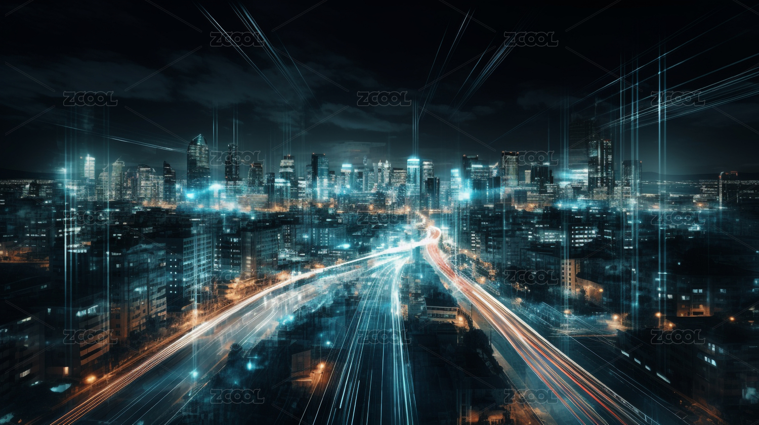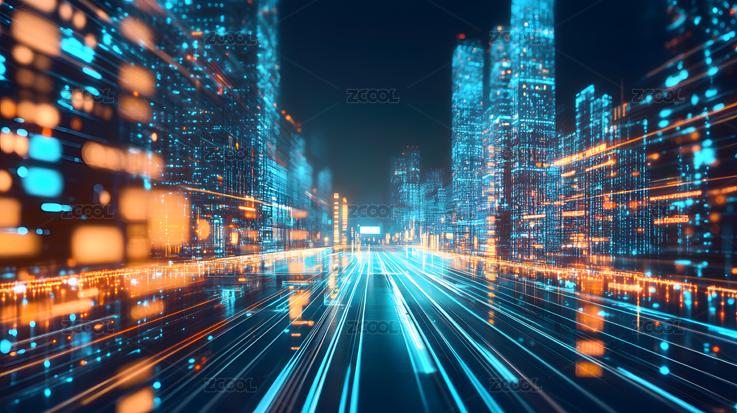 AI数字艺术,无人,城市,未来,摩天大楼,插画,公路,路,建筑,都市风景