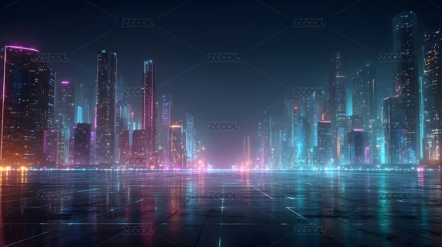 AI数字艺术,无人,城市,未来,摩天大楼,插画,公路,路,建筑,都市风景