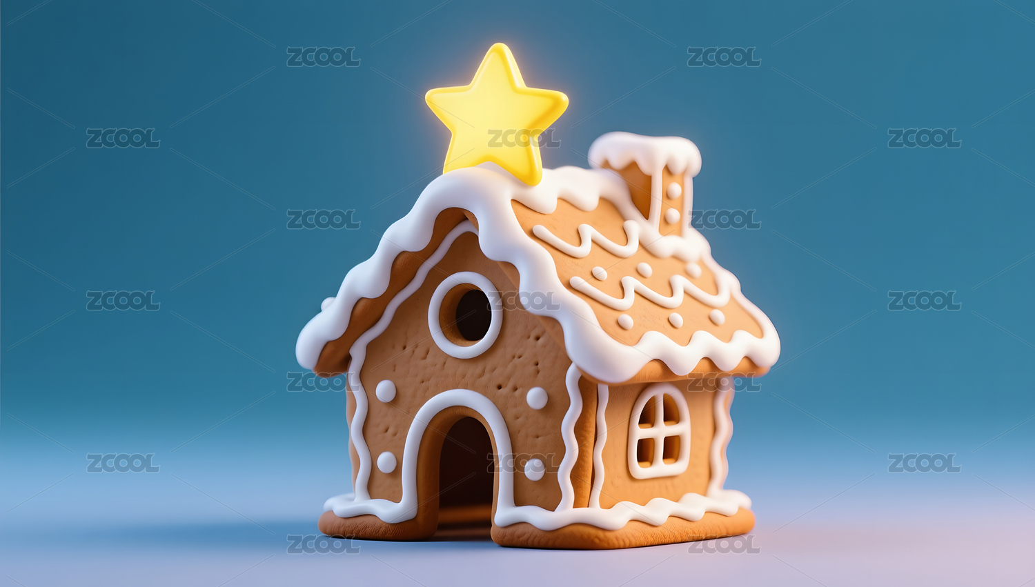 黑底可爱圣诞节尖顶姜饼小屋饼干3D卡通画