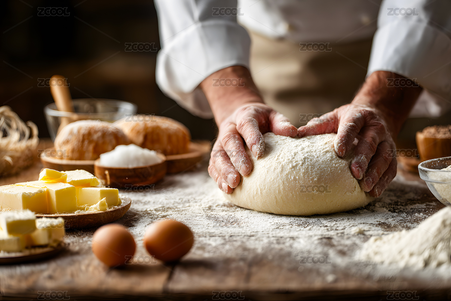 糕点师傅正在厨房里揉面