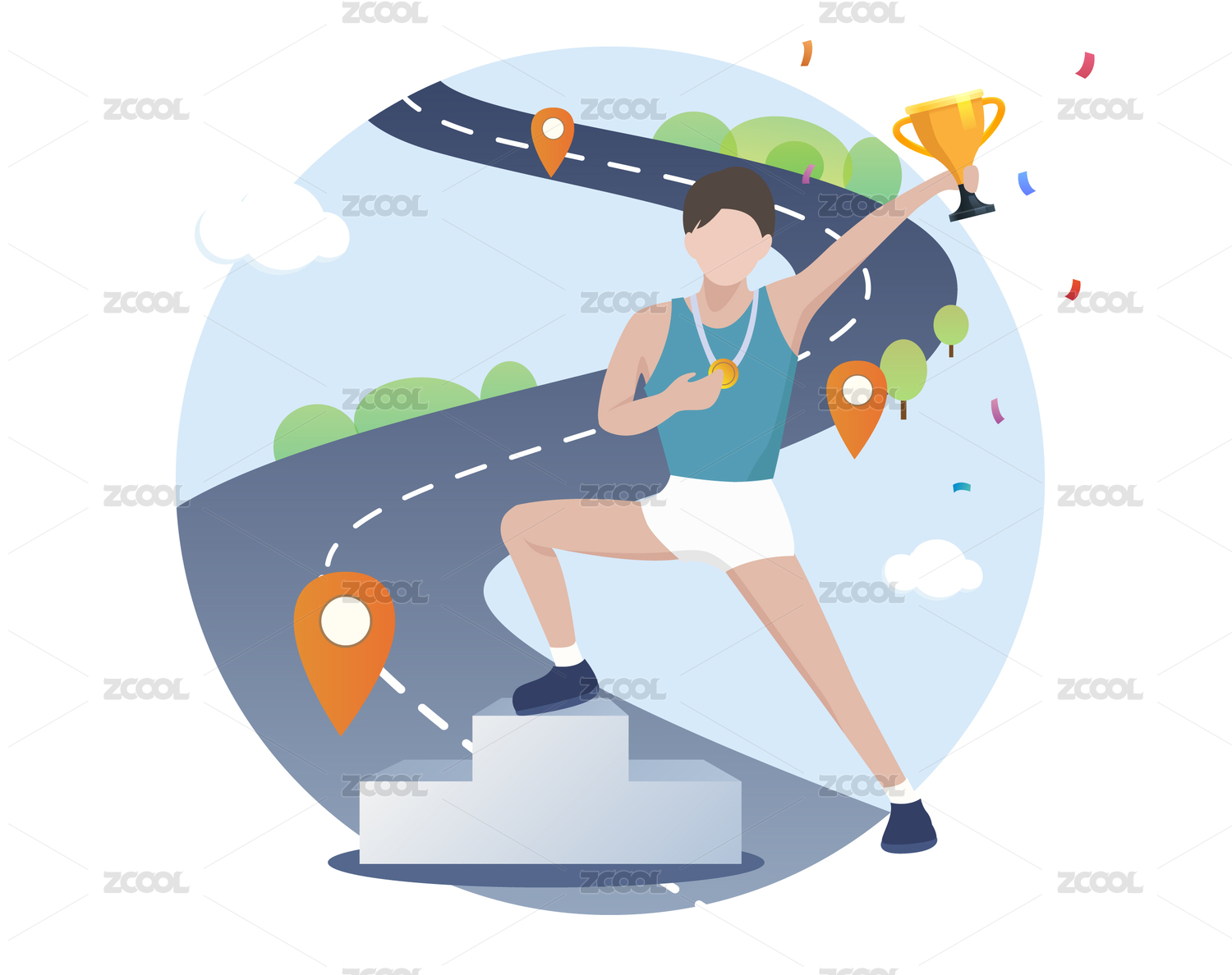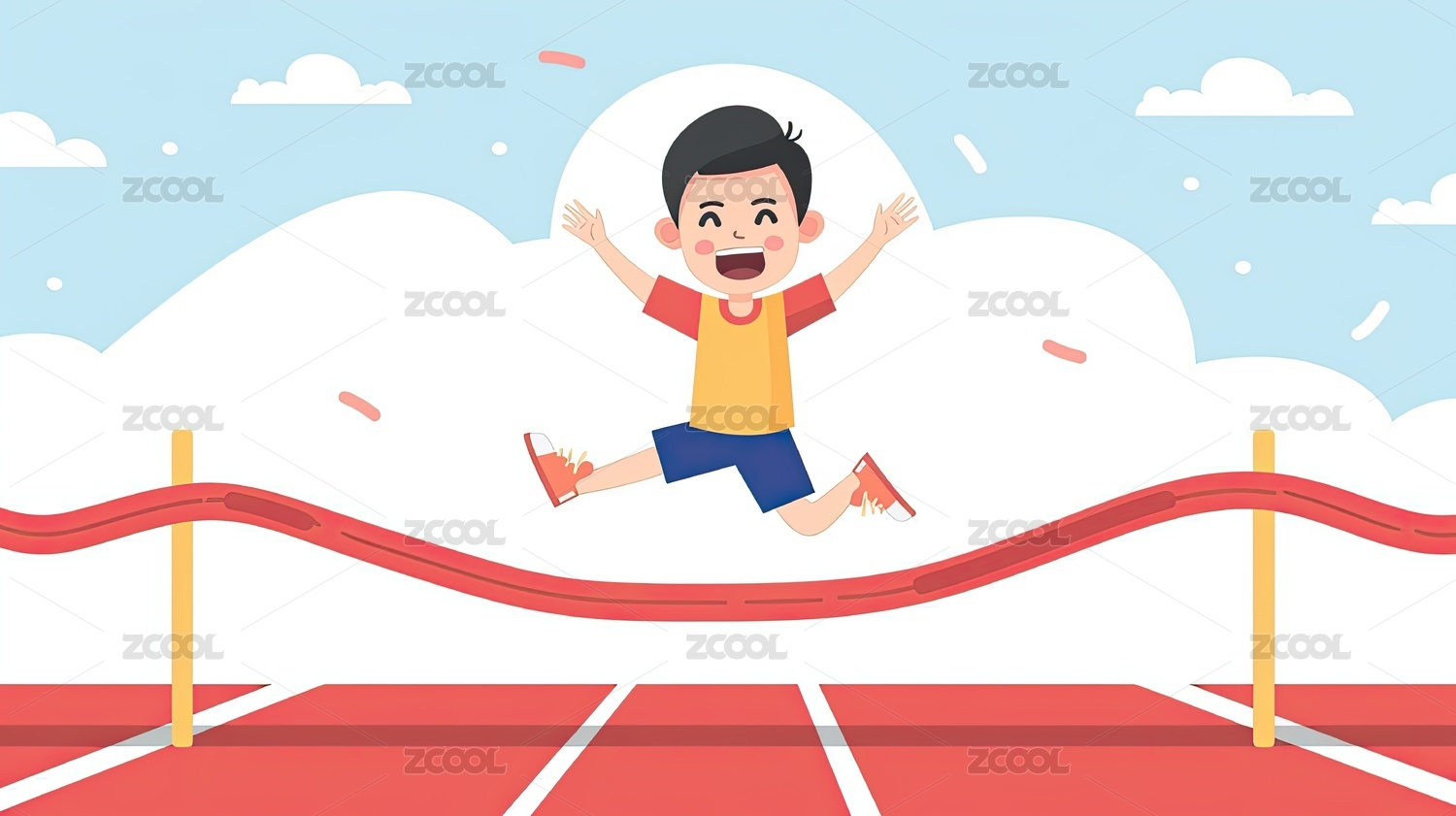 卡通人物冲线庆祝胜利