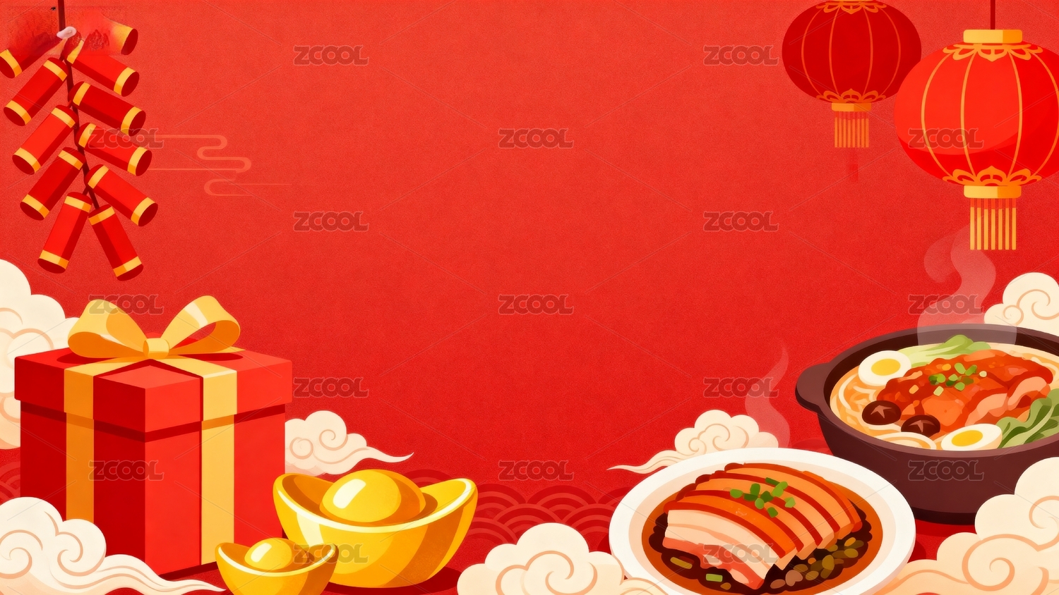 传统,喜庆,节日,灯笼,红色,装饰,庆祝,菜肴,烟花,年夜饭