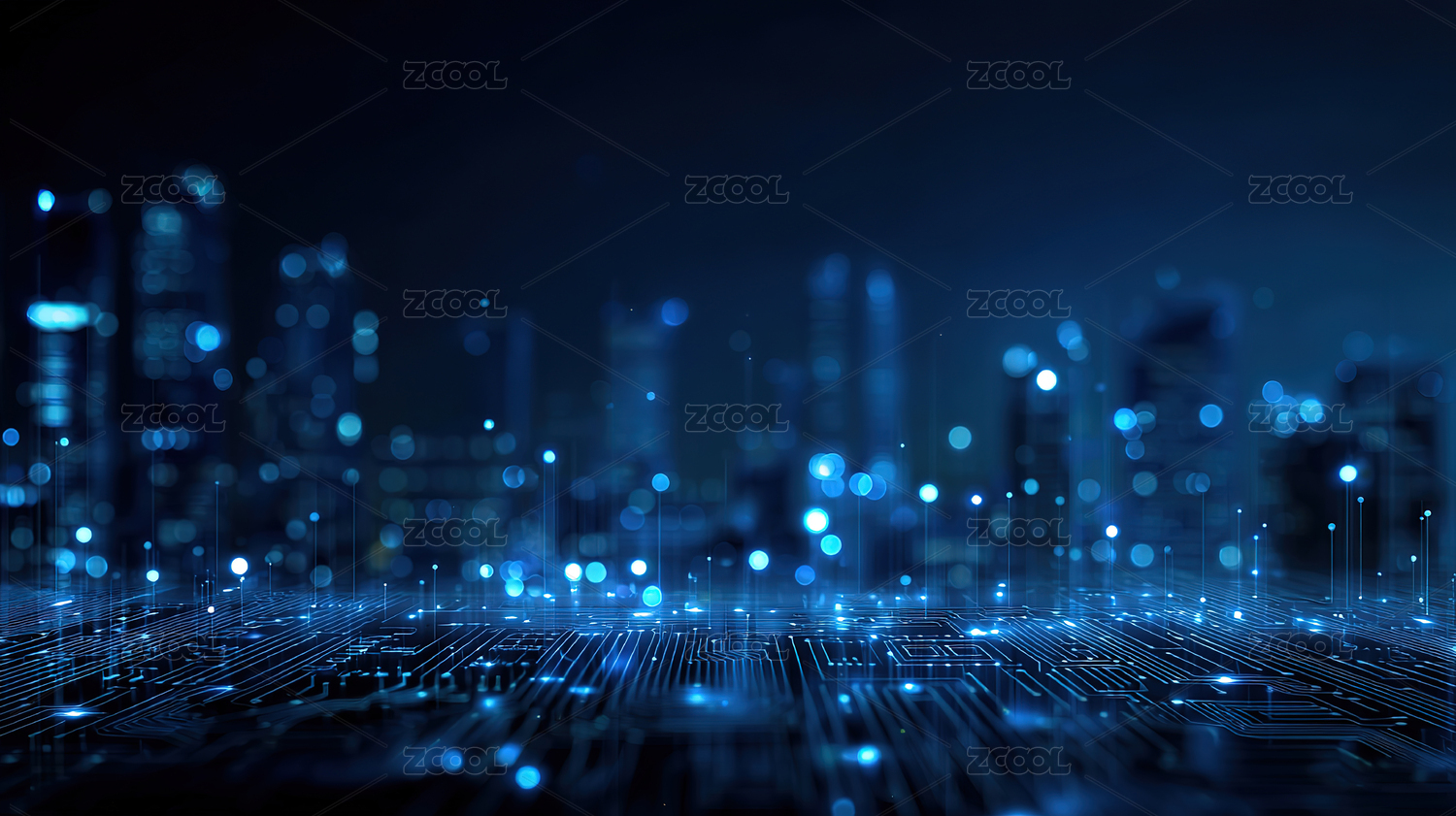 科技城市夜景与电路板光影