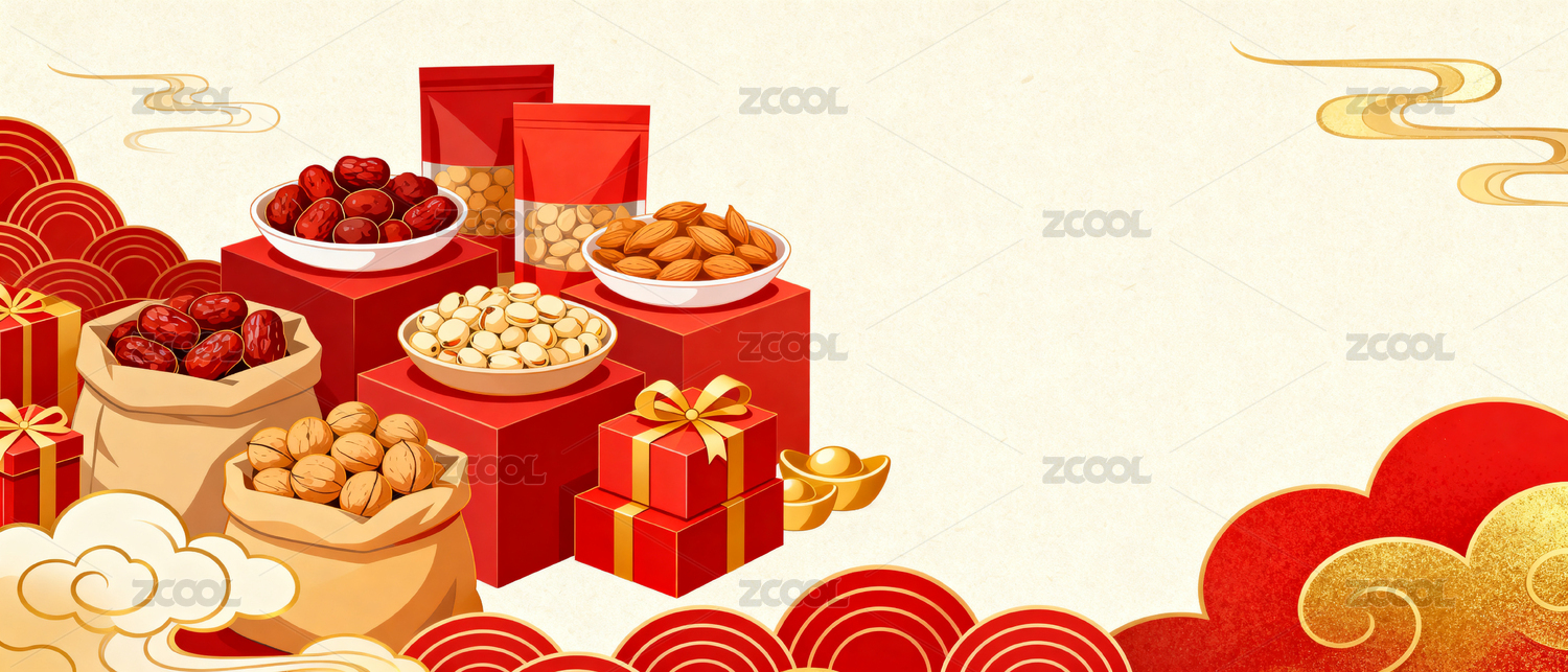 礼盒,装饰,礼物,节日,庆祝,花生,橘子,核桃,红色,黄色