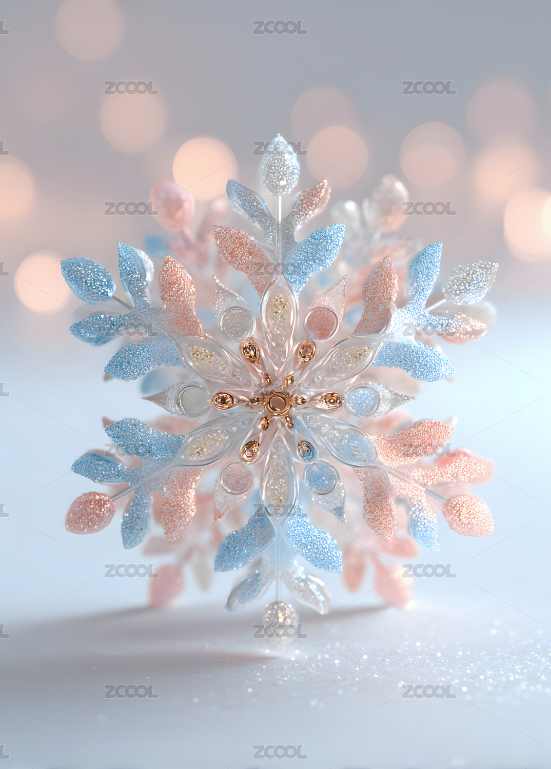 3D羊毛毡毛绒绒质感蓝色雪花模型