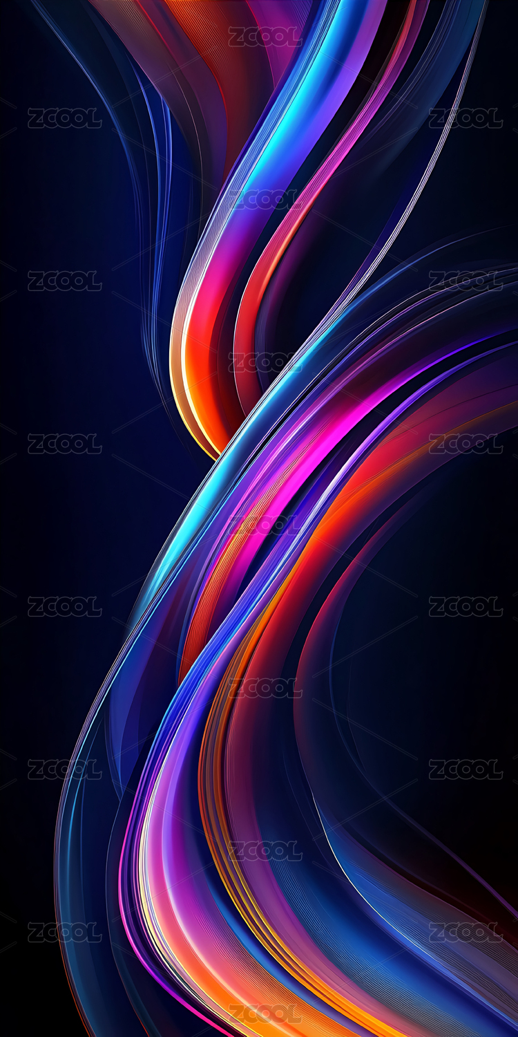 数码蓝紫色霓虹灯曲线几何抽象图形海报背景