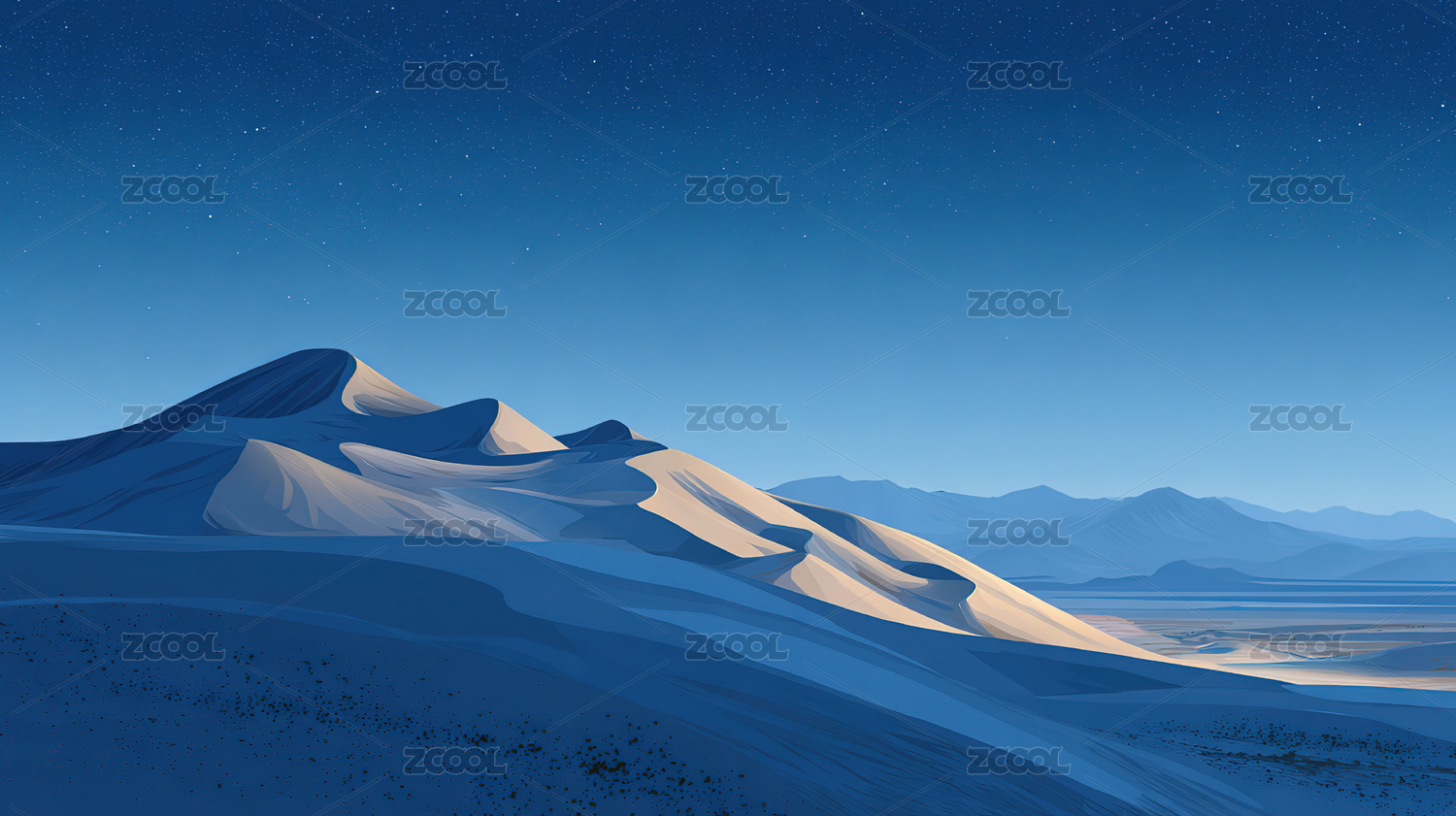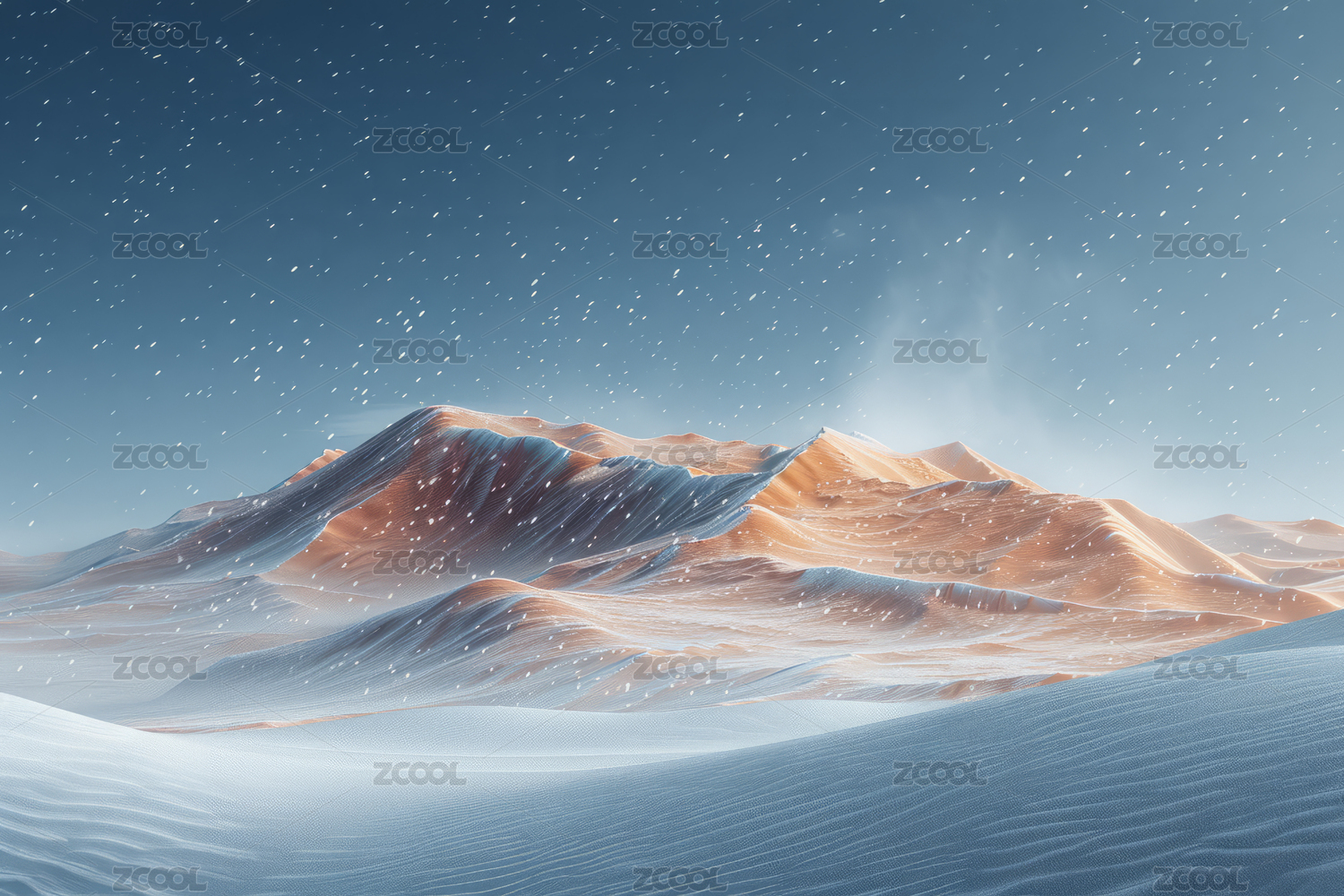 蓝夜雪山沙漠交织景