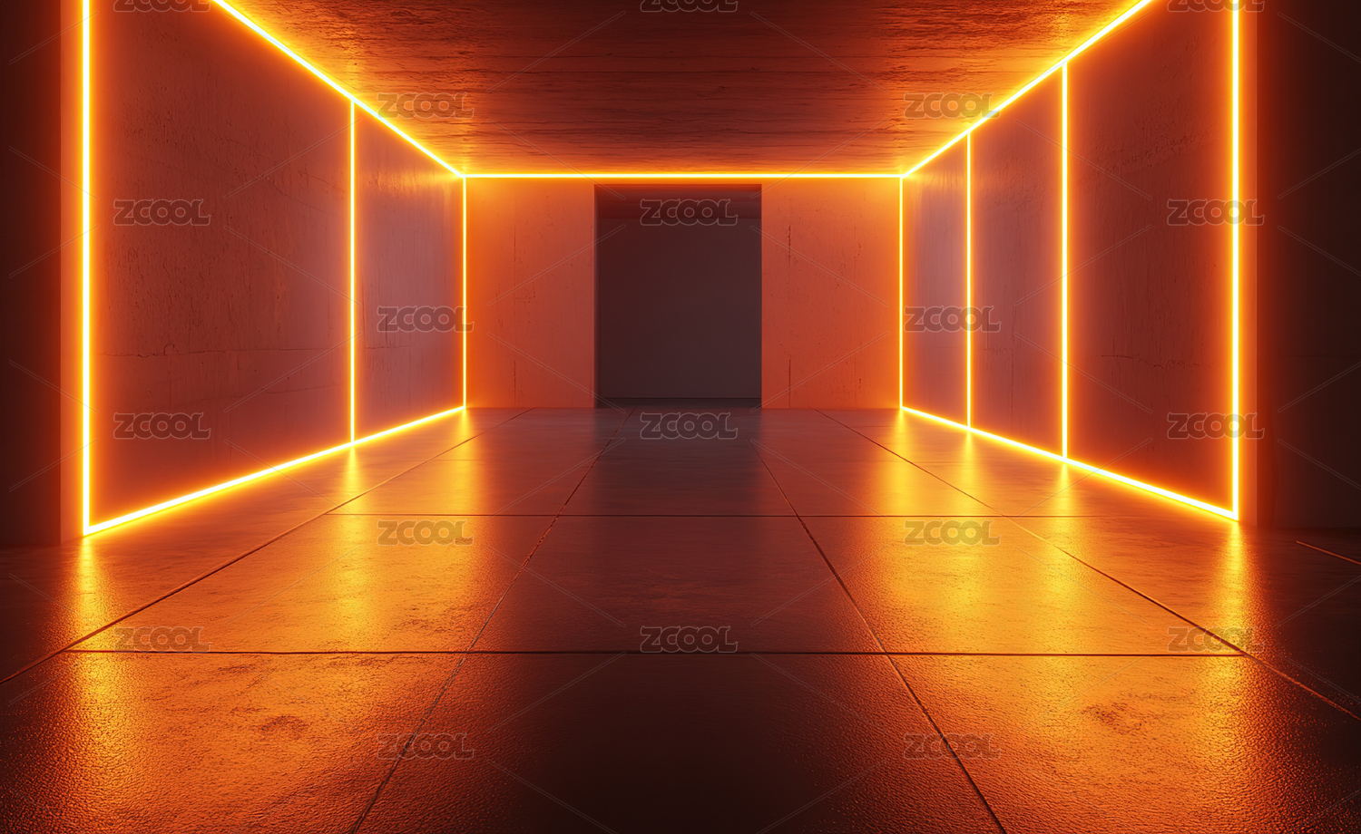3D黑色发光室内三维空间场景