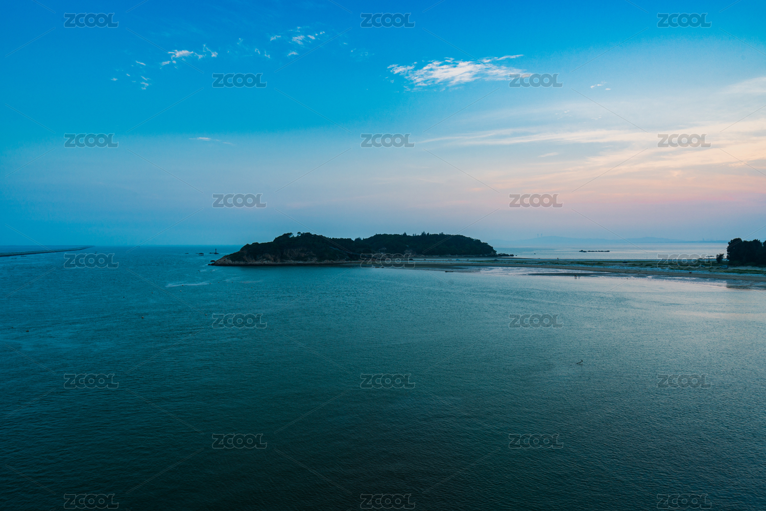 大连傅家庄公园对面的小岛和宽阔的海面