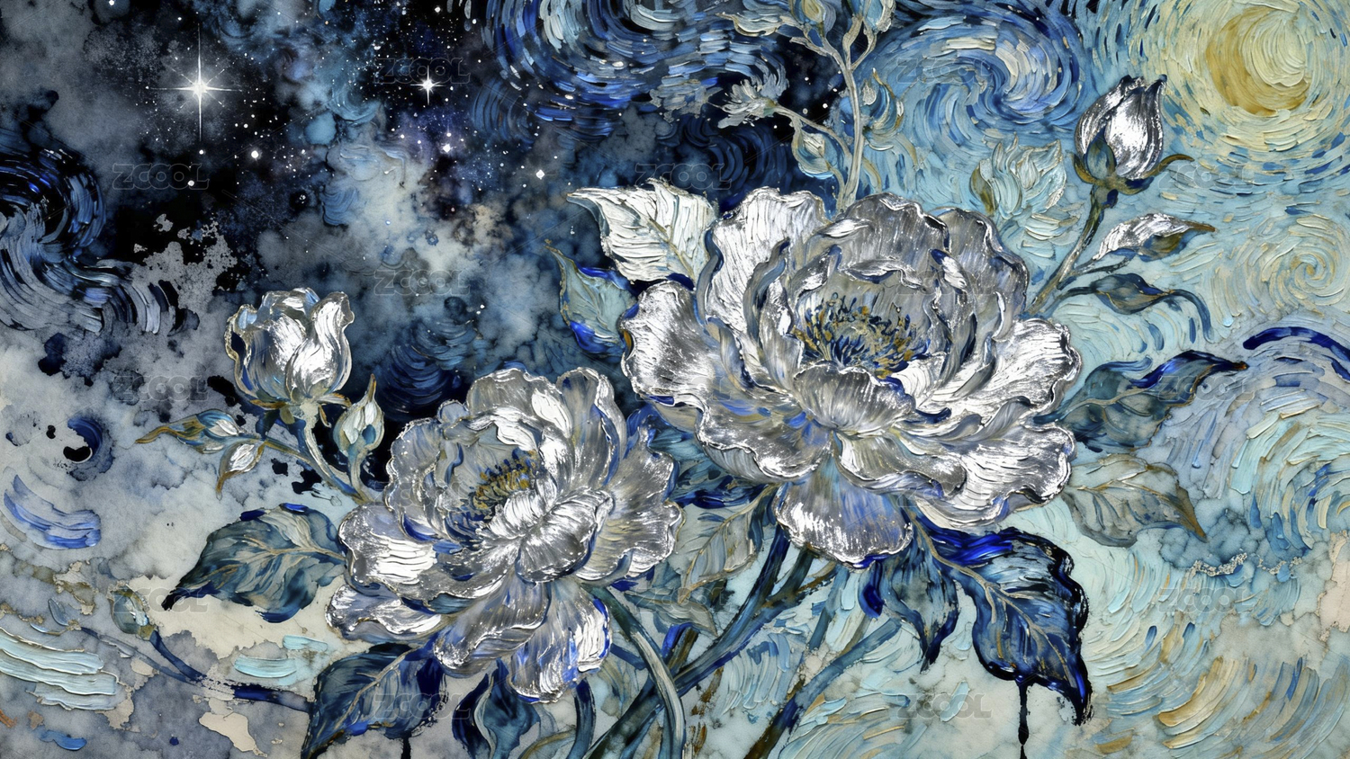 油画,花丛,装饰画,花卉,蓝玫瑰,艺术画,绿叶,花朵,植物,绘画