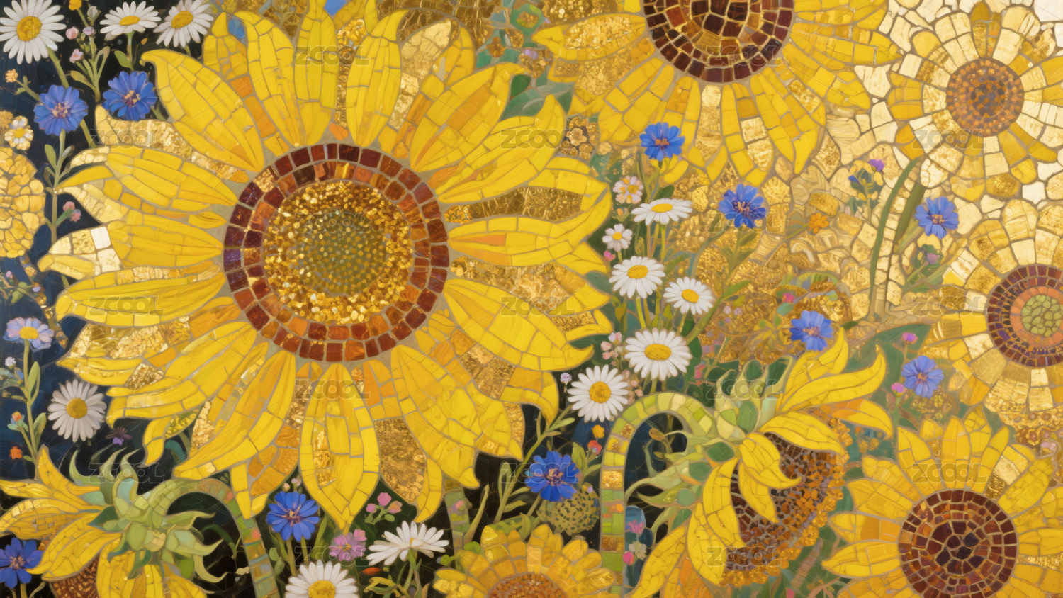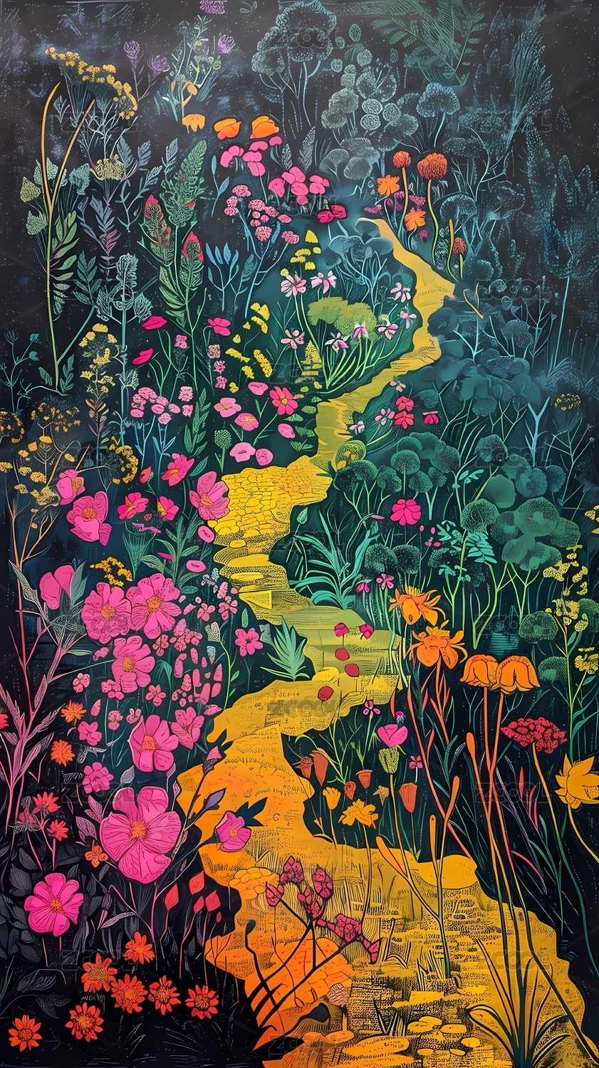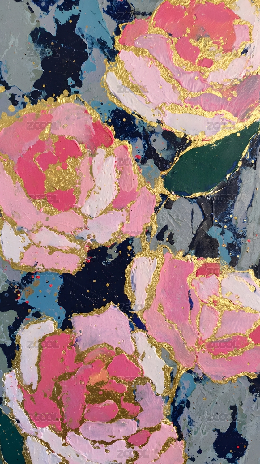 厚涂粗笔触印象派花朵蓝花背景海报装饰画