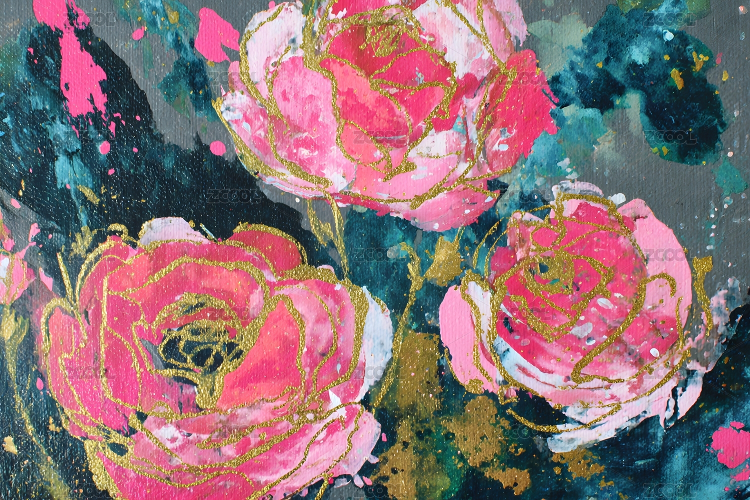 油画,花丛,装饰画,花卉,蓝玫瑰,艺术画,绿叶,花朵,植物,绘画