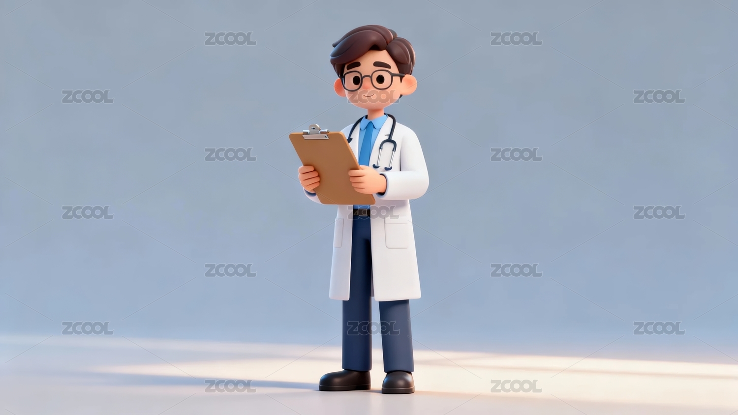 医生,男医生,卡通,微笑,白大褂,听诊器,病历夹,病历,医疗,健康