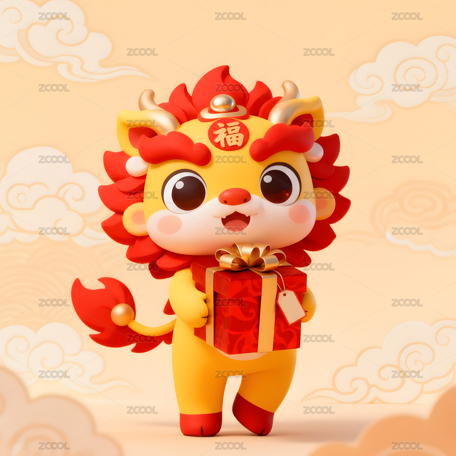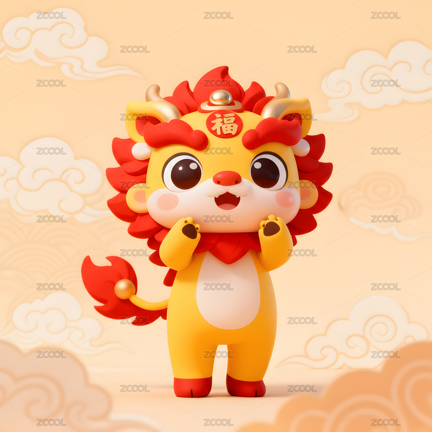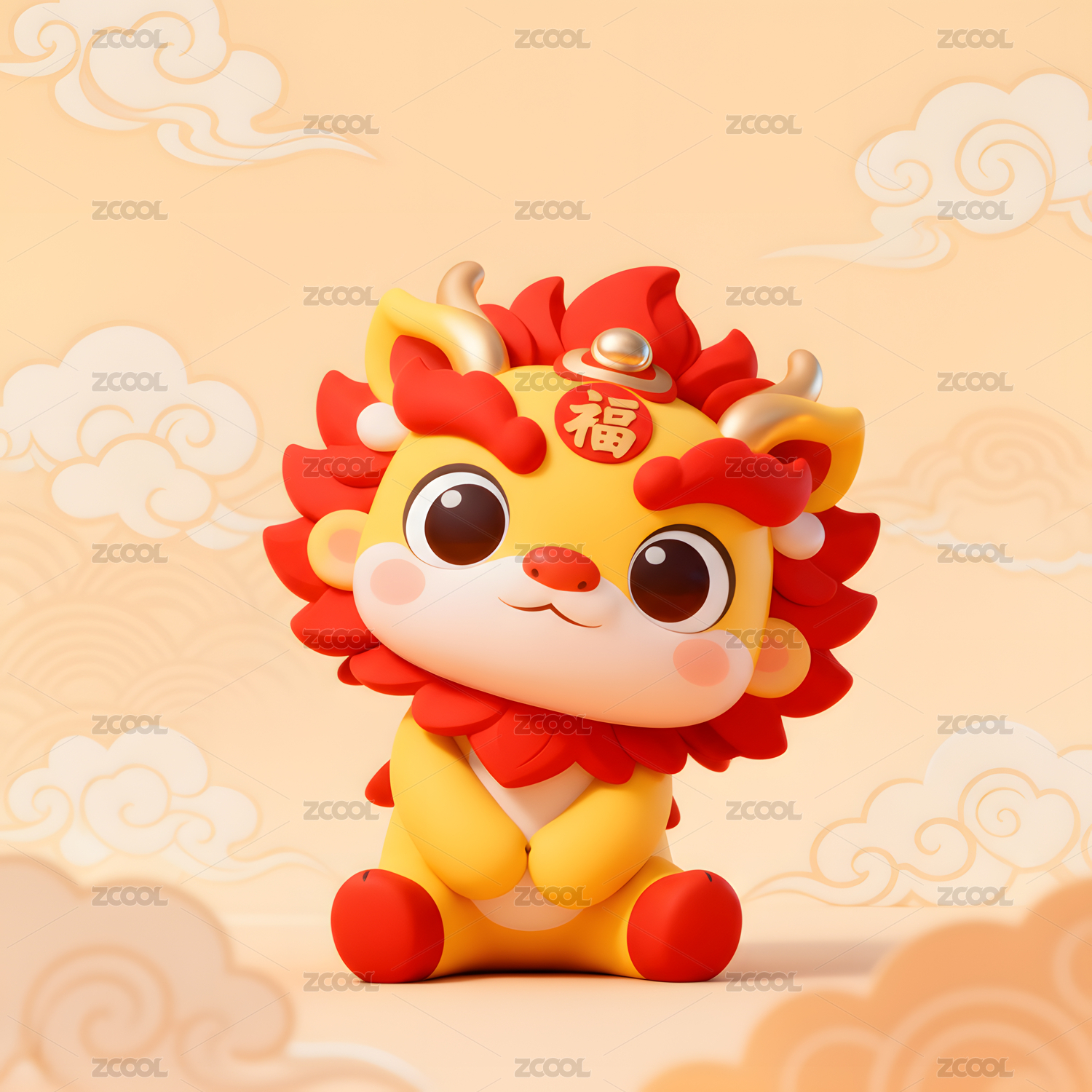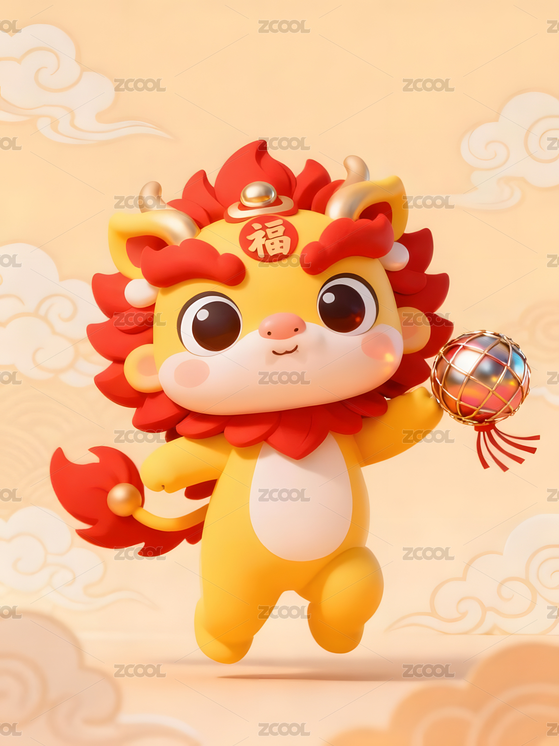 可爱,醒狮,3D,立体,中国风,传统,卡通,形象,盲盒,呆萌