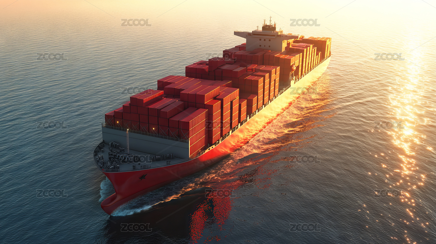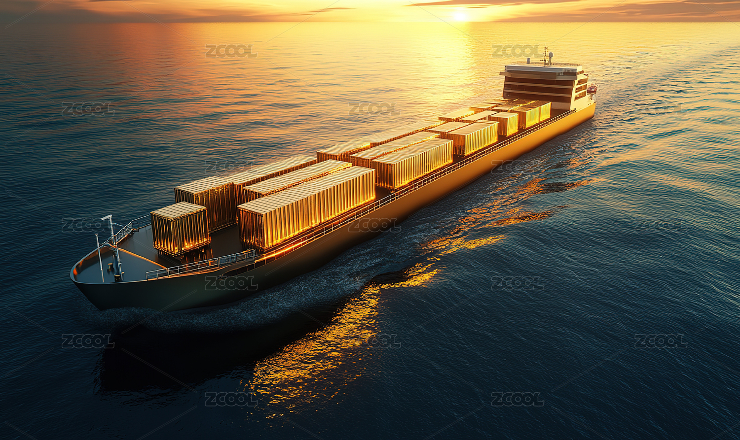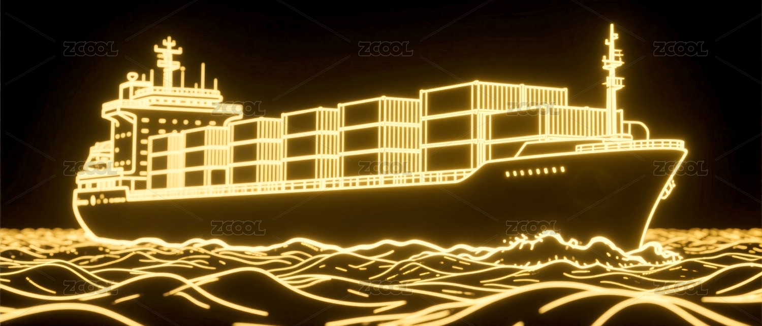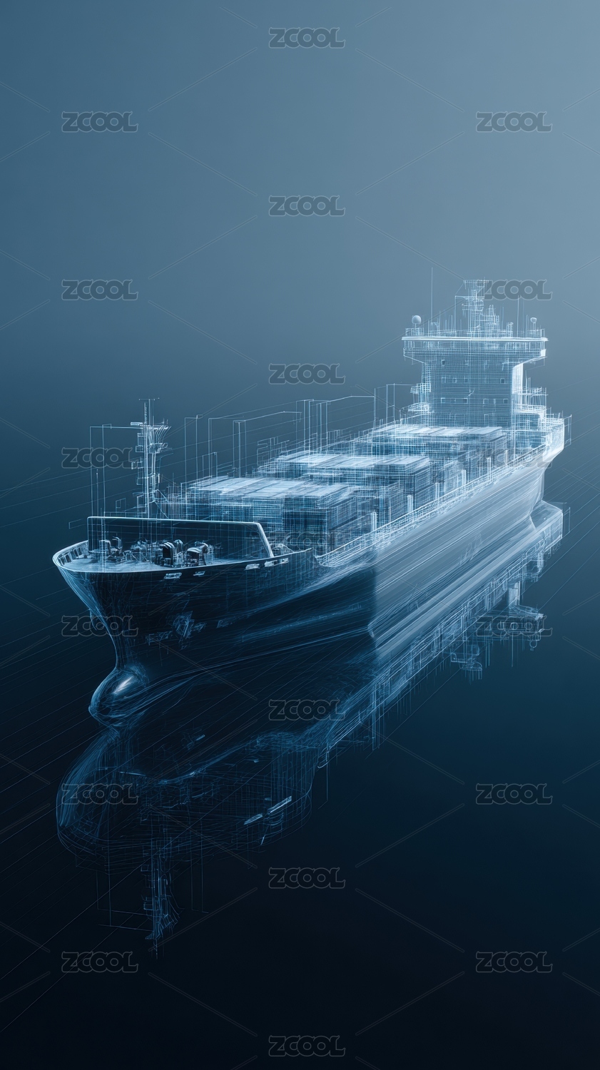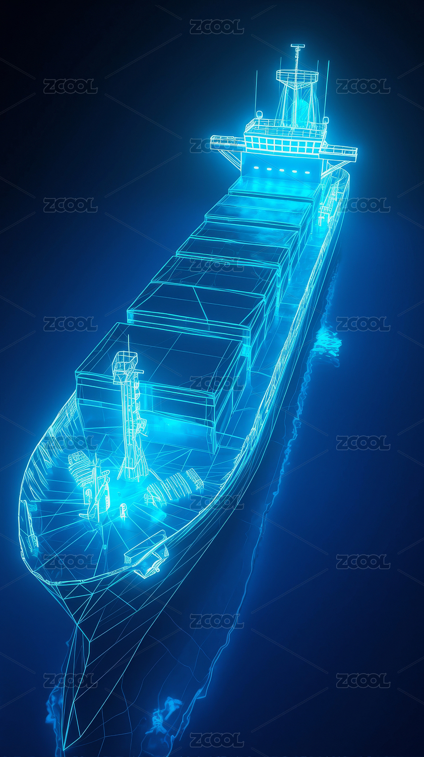 货轮,集装箱船,全息投影,3D模型,蓝色,光影,科技感,船舶,海运,物流