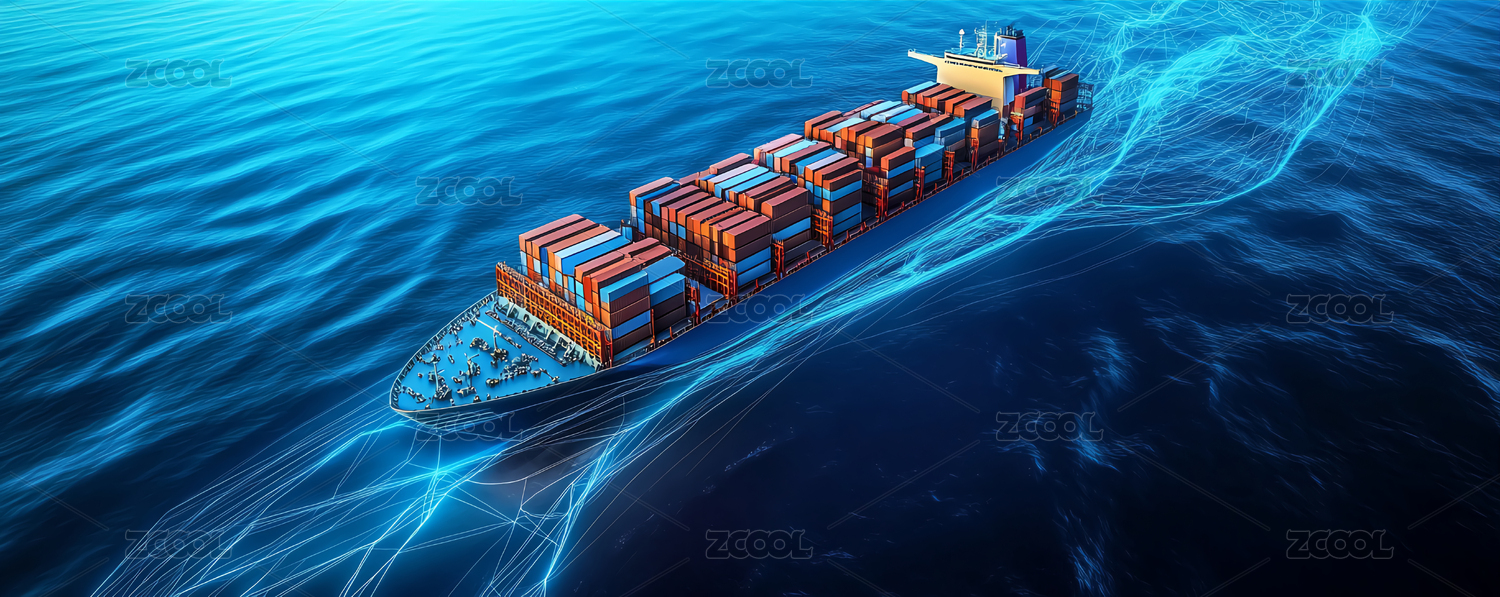 货轮,集装箱船,全息投影,3D模型,蓝色,光影,科技感,船舶,海运,物流