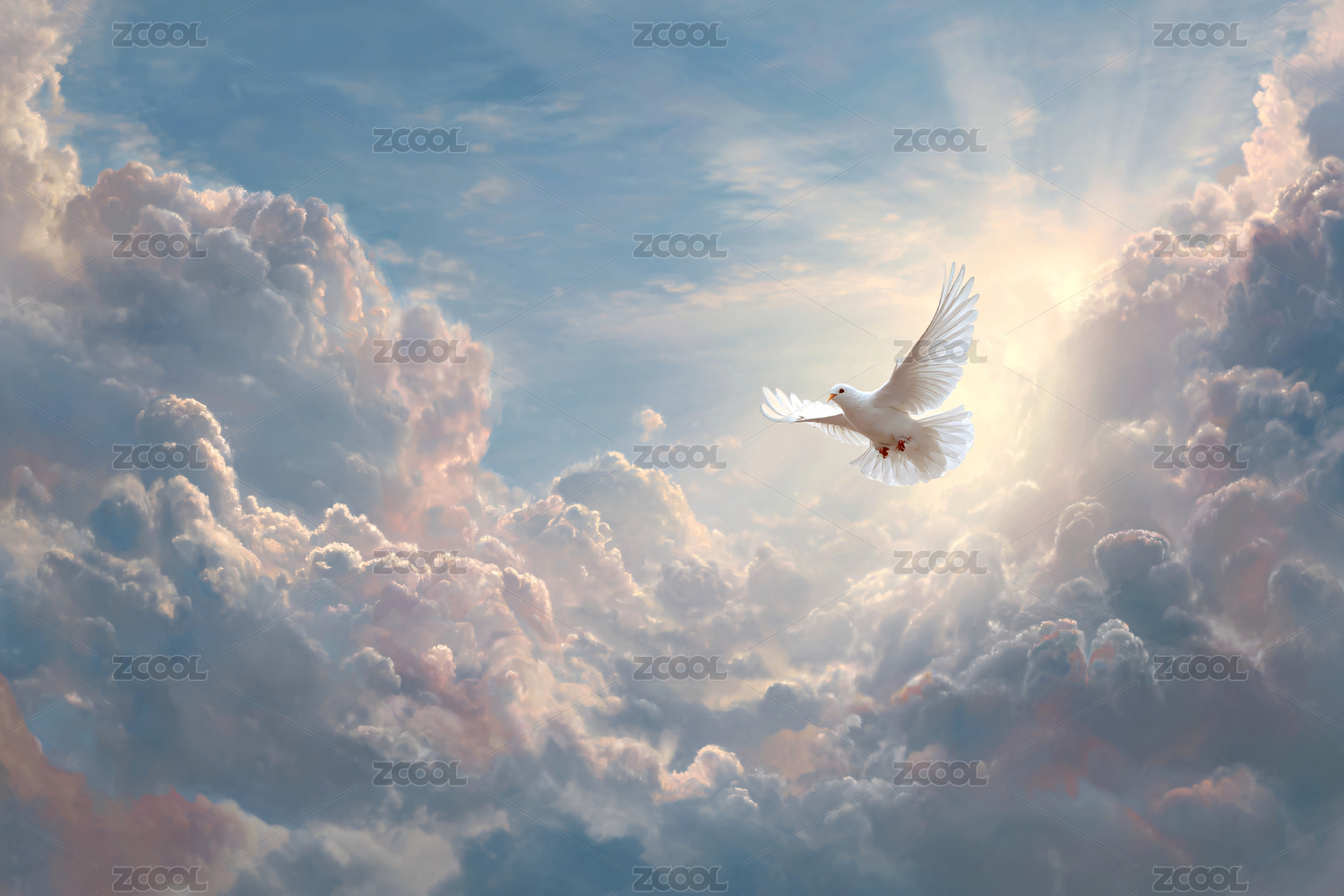 和平鸽,白鸽,展翅,霞光,阳光,光芒,云彩,天空,希望,飞翔