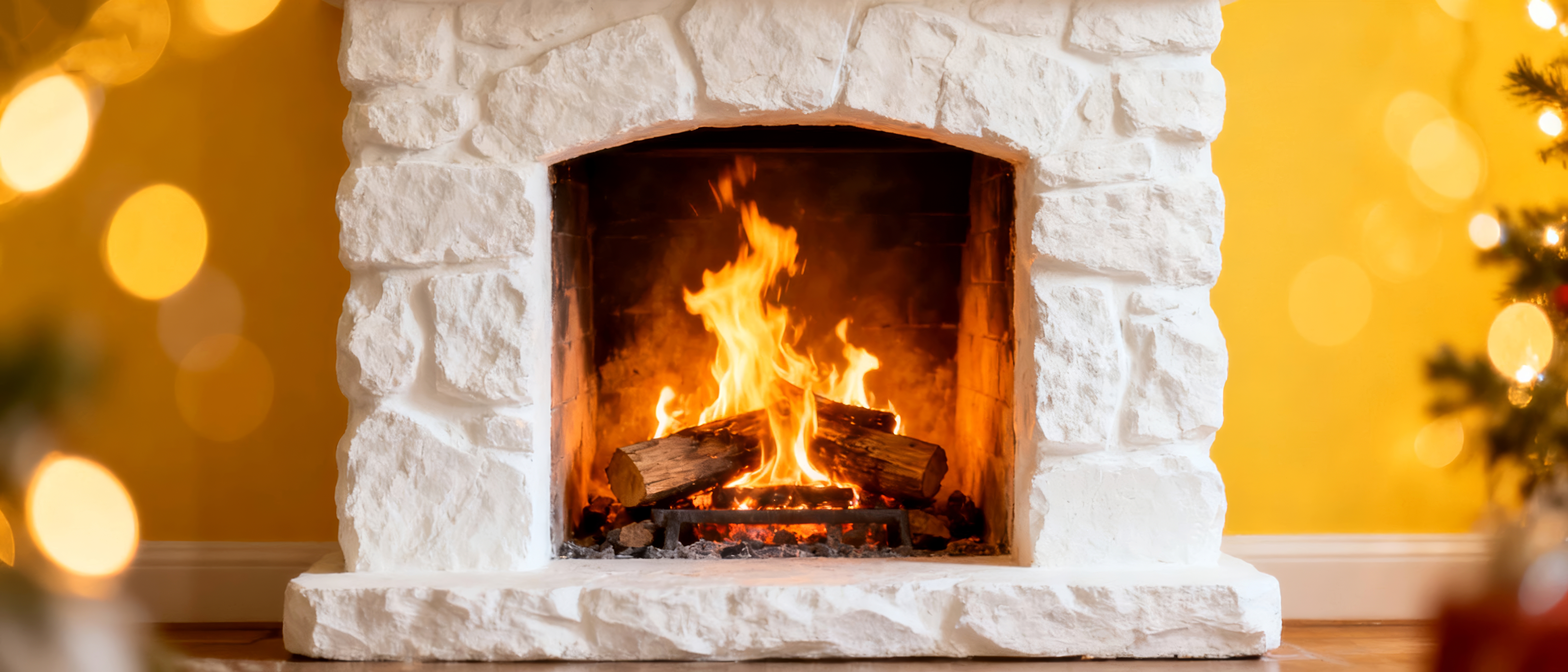 在有壁炉的客厅的椅子上放了一个取暖围巾
