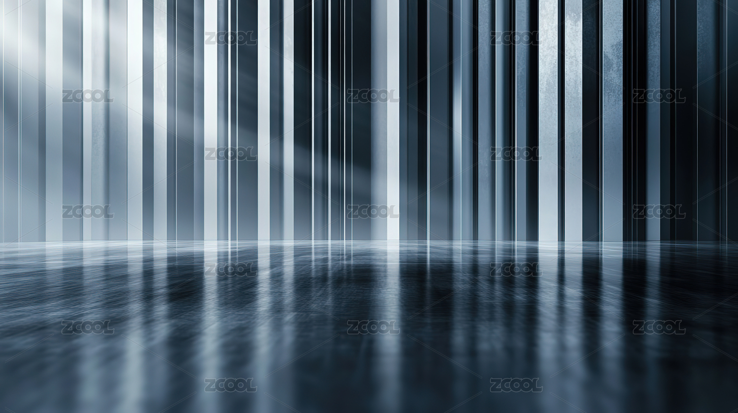 蓝色竖条光影空间